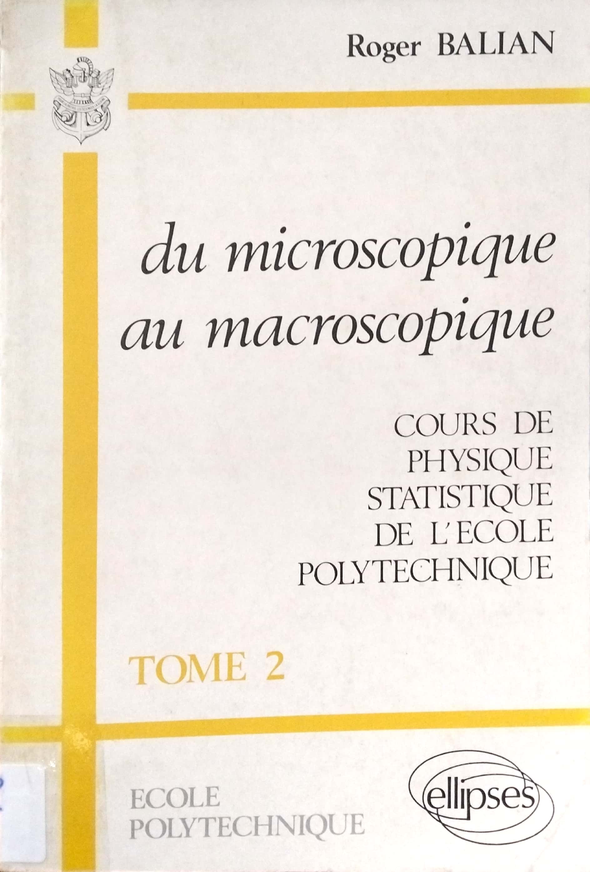Balian, R. (1982). Du microscopique au macroscopique. T2, cours de physique statistique de l'école polytechnique . Ellipses;