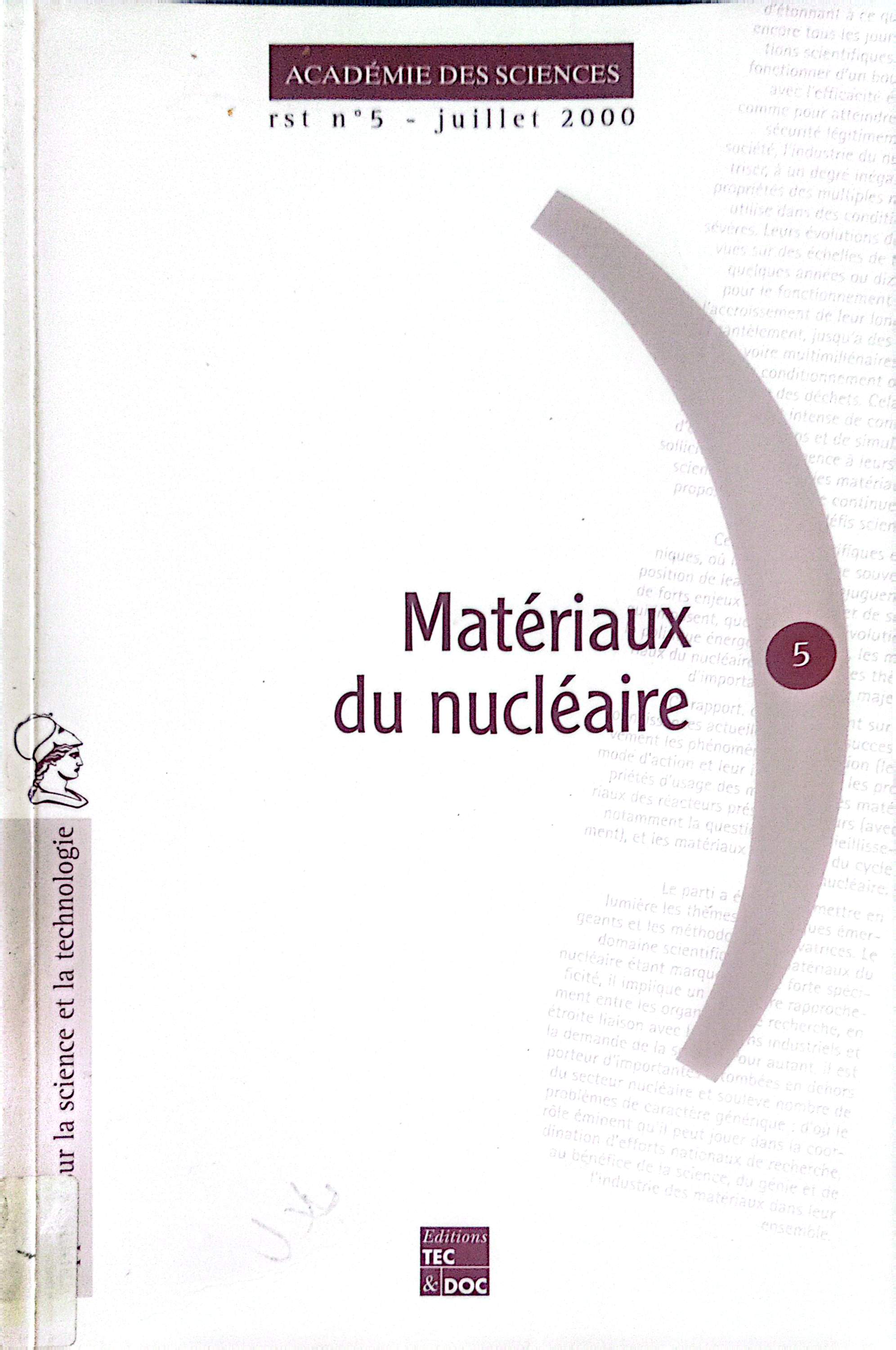ACADEMIE DES SCIENCES (2000). Matériaux du nucléaire . Tec & doc;
