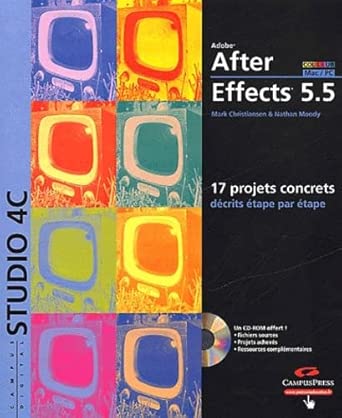 After Effects, poids lourd du compositing, est bien plus qu'un outil d'animation et d'application d'effets. Il permet de comprendre et de résoudre des problèmes de compositing extrêmement pointus. Le Campus Digital Studio 4c After Effects vous fera découvrir les caractéristiques et les techniques les plus avancées du logiciel. Au fil des 17 chapitres, qui représentent autant de projets concrets, vous étudierez le décalage des couches, l'incrustation sur fond vert, les expressions, les calques 3D, la notion de calque parent, le compositing à partir d'écrans vert ou bleu, l'importation de matériaux 3D pré-rendus, l'animation de personnages, etc. La réalisation de chaque projet est expliquée pas à pas, et tous ont été conçus avec la version 5.5 d'After Effects. Des variantes ont été ajoutées à l'attention des utilisateurs de la version 5.0. Le Campus Digital Studio 4c After Effects a été écrit pr 13 professionnels de l'audiovisuel et du monde du multimédia, qui comptent parmi les utilisateurs d'After Effects les plus expérimentés. Il s'adresse à un public qui connaît déjà bien After Effects : vidéastes, animateurs, spécialistes d'effets spéciaux désireux de profiter de l'expérience d'experts