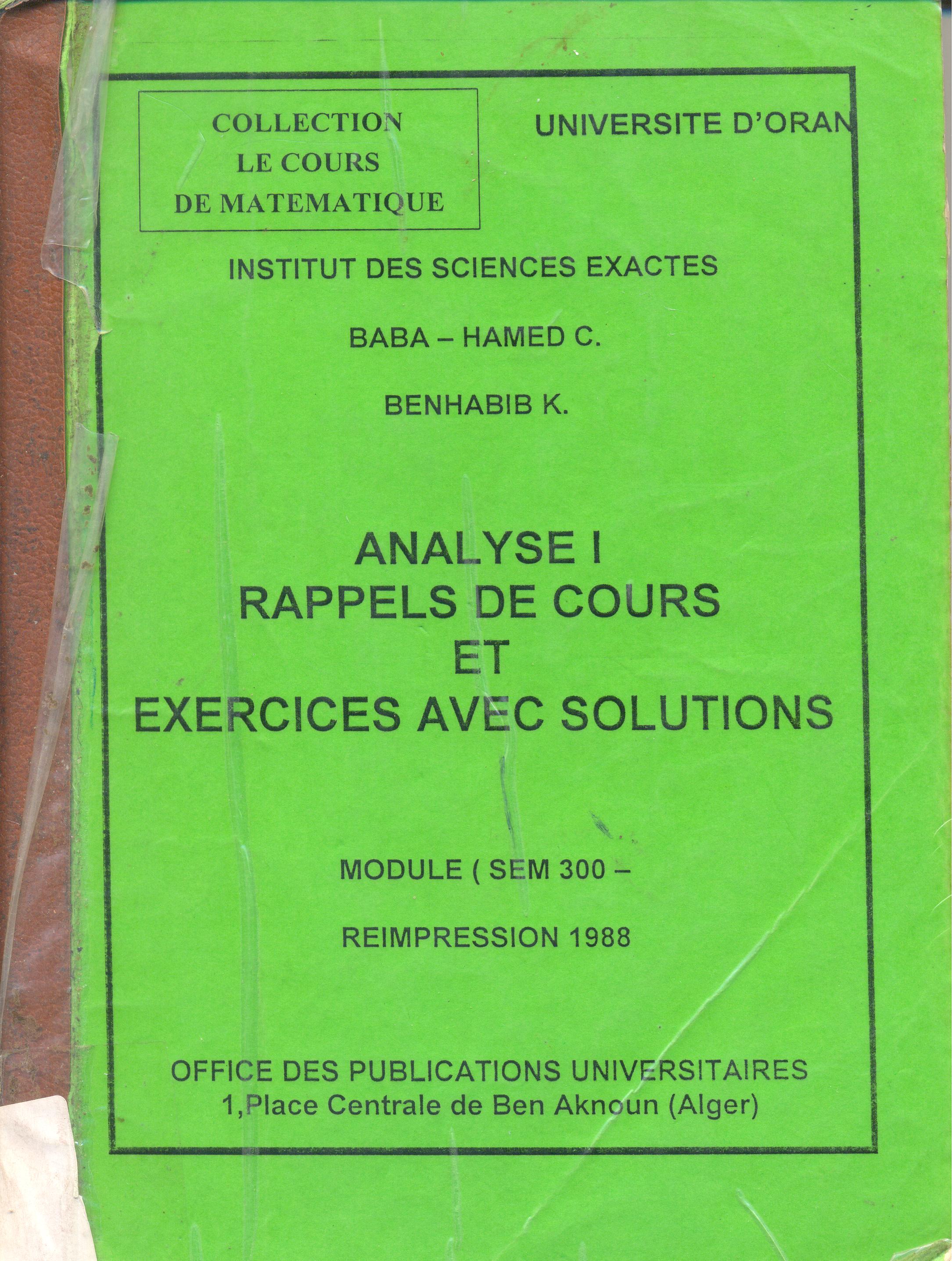 Baba-Hamed, C. & Benhabib, K. (1988). Analyse I . OPU;