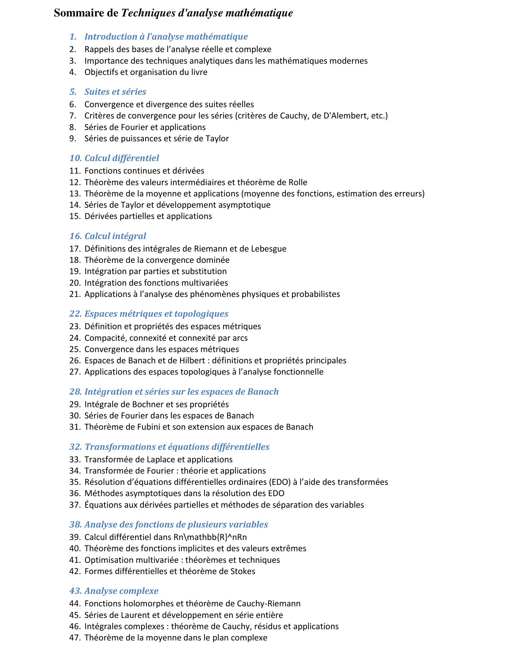 L'ouvrage expose un certain nombre de techniques d'analyse dont tout les étudiants de mathématiques.
