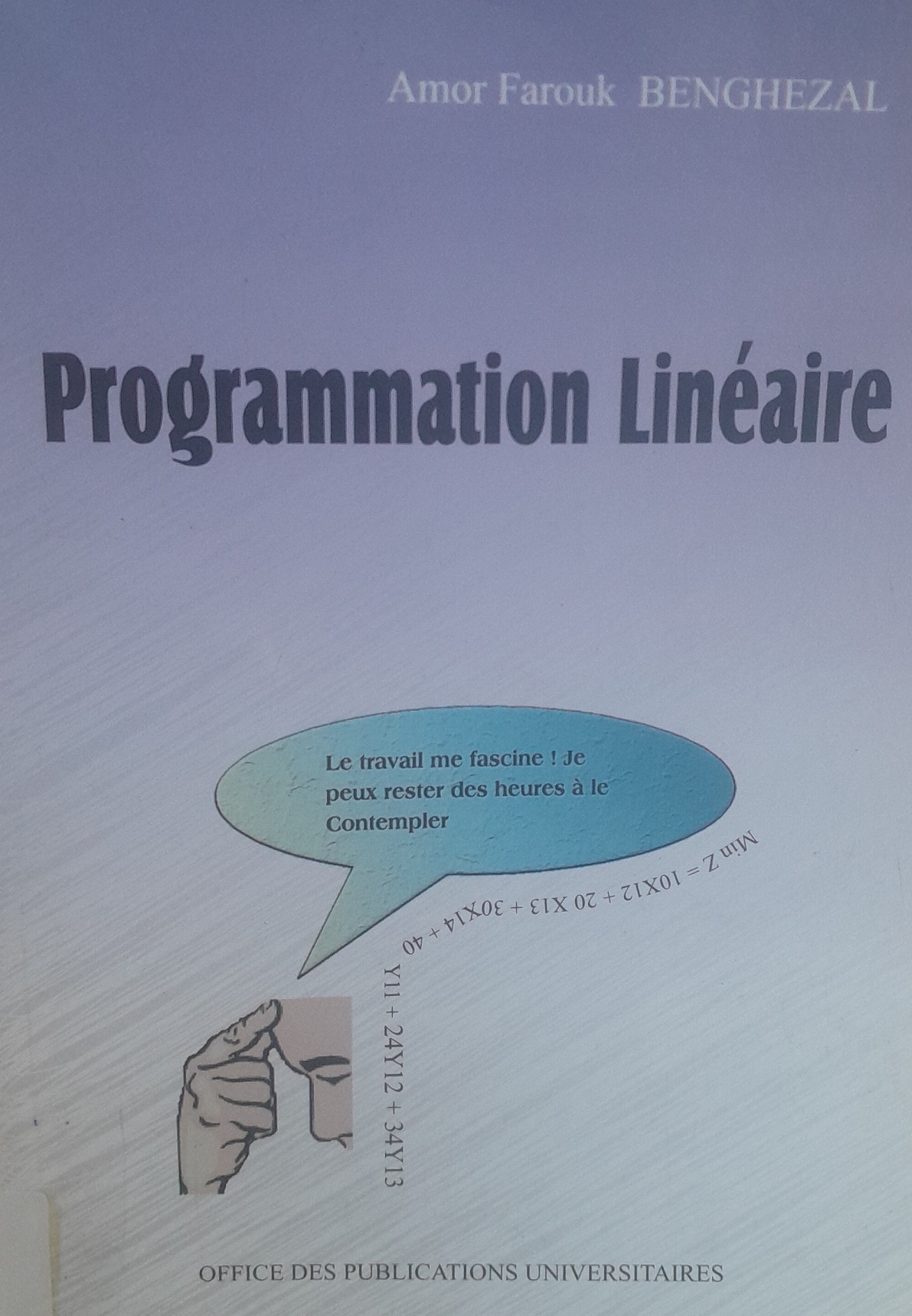 Cet ouvrage est réédité dans le souci notamement: De Mieux faire comprendre à l'étudiant le role important que joue le programmation linéaire dans processus de prise de décision des opérateurs économiques