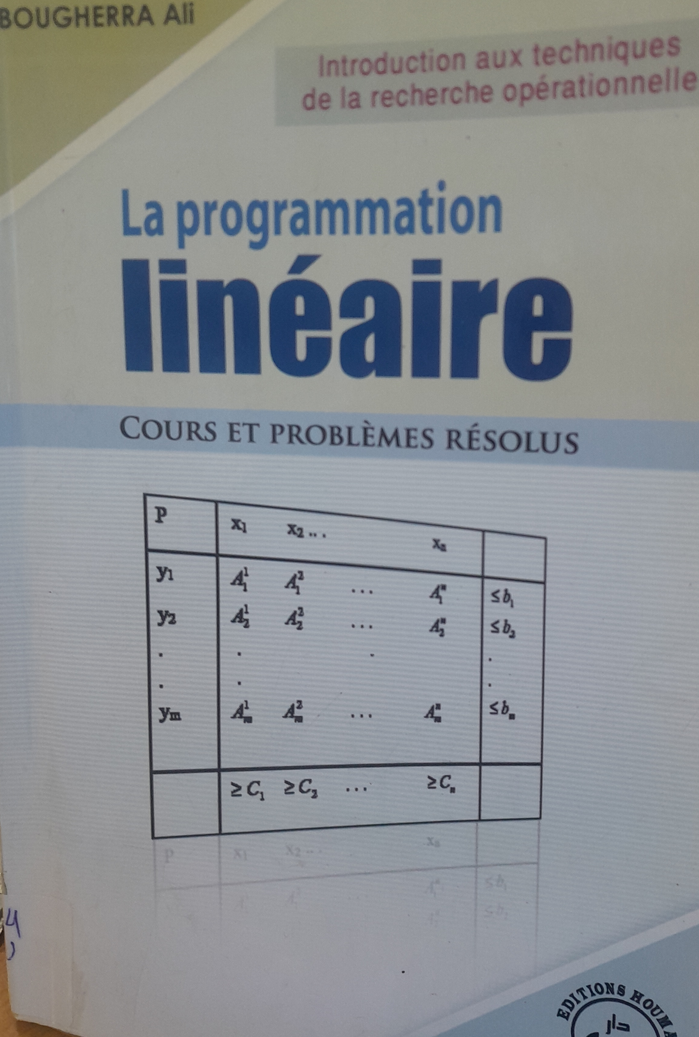 Bougherra, A. (2010). Introduction aux techniques de la recherche opérationnelle1,la Programmation linéaire . Houma Edition;
