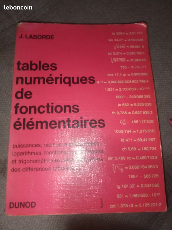 Kuntzmann, J. & Laborde, J. (1970). Tables numériques de fonctions élémentaires (2ème éd.) . Dunod;