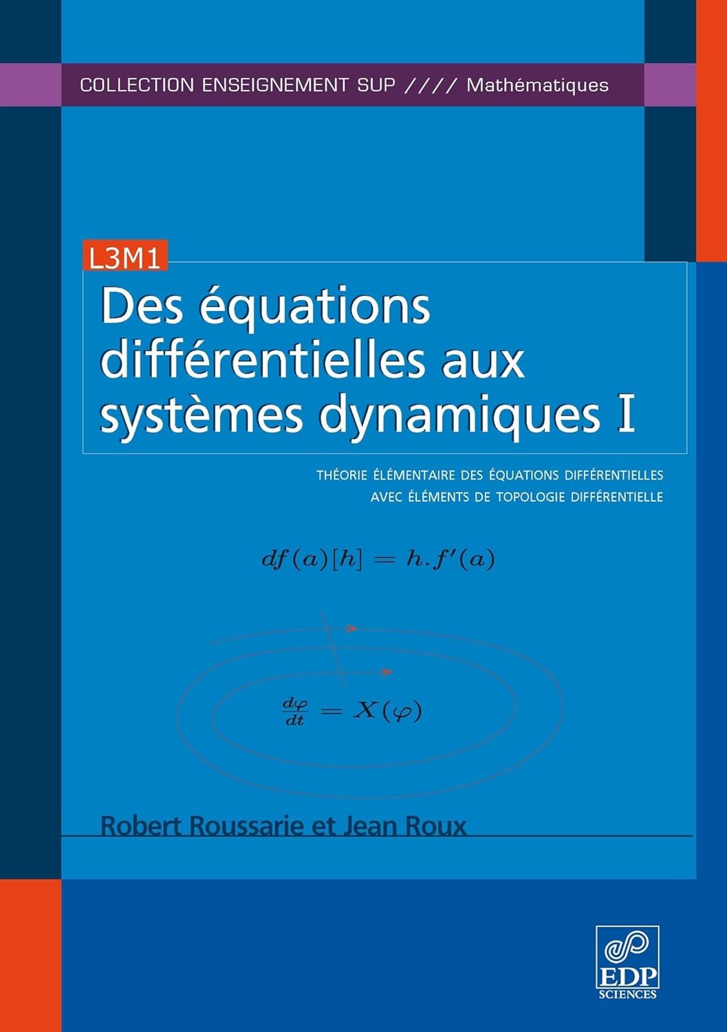 Cet ouvrage est une introduction élémentaire à la théorie des équations différentielles. Il est destiné à illustrer un cours classique sur les équations différentielles dans le cadre d'une licence de mathématiques, mais il peut également servir d'initiation aux notions de base indispensables aux applications. Une première partie est consacrée à des pré- requis de calcul différentiel et de topologie différentielle : définition des termes et notions de base utilisées par la suite, concernant aussi bien le calcul différentiel dans un espace euclidien que la topologie différentielle.