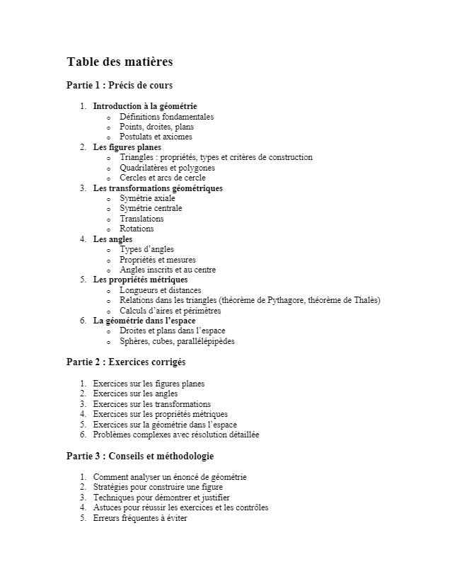 Ce titre indique un ouvrage ou une ressource dédiée à la géométrie, comprenant des exercices corrigés pour pratiquer, des conseils pour mieux comprendre et appliquer les notions, ainsi qu’un précis de cours clair et synthétique. Le contenu est adapté aux nouveaux programmes scolaires, garantissant une mise à jour conforme aux dernières exigences pédagogiques.