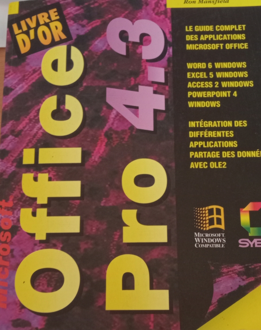 Cet ouvrage de 1 066 pages détaille toutes les applications phares de la suite Microsoft Office 4.3 (Word 6.0, Excel 5.0, PowerPoint 4.0, Access 2.0, Mail 3.2), avec de nombreux exemples pratiques fr.wikipedia.org : Word : traitements de texte avancés, styles, formatage, publipostage. Excel : fonctions financières, graphiques, gestion des données, automatisation via macros. PowerPoint : création et gestion de diapositives, animations, présentations professionnelles. Access : bases de données relationnelles (création, requêtes, formulaires, rapports). Intégration : liens OLE 2.0 entre applications, import/export, intégration cohérente de documents. Macros & automatisation : création, gestion, sécurité. Formulaires, requêtes paramétrées et rapports : méthode structurée pour la conception d’applications. Fonctionnalités avancées : personnalisation des menus, barres d’outils, optimisation du flux de travail. Le livre offre une formation à la fois théorique et pratique, entièrement illustrée de captures d’écran, dédiée aux professionnels souhaitant maîtriser Office 4.3 sous Windows 3.x ou NT .
