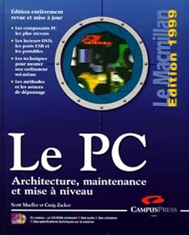 Cet ouvrage, destiné aux techniciens, étudiants ou passionnés, est considéré comme une référence complète sur les ordinateurs personnels. Il couvre en détail : Architecture du PC : toutes les architectures système (cartes mères, bus, facteurs de forme, chipset), avec leur rôle dans la stabilité et les performances Composants matériels : analyse approfondie des processeurs (Intel, AMD), de la mémoire (DDR, DDR2), cartes vidéo, cartes son, stockage (IDE, SCSI, disques durs, optique), alimentations, boîtiers… Périphériques et interfaces : souris, claviers, lecteurs de DVD‑RW/Blu‑Ray, ports USB 2.0, FireWire, interfaces d’entrée‑sortie… Maintenance et diagnostic : identification des composants sensibles, méthodes de test, entretien régulier, dépannage des pannes matérielles, récupération de données Mise à niveau et optimisation : conseils pour choisir et installer des composants récents, overclocking, refroidissement, passer à des formats plus récents (DTX, mini‑DTX), adopter les nouvelles technologies (chipsets, bus…) Ressources multimédia : DVD‑ROM inclus avec animations vidéo, documentation technique, spécifications complètes, éditions précédentes de l’ouvrage Au total, plus de 1 200 pages constituant une « bible » du matériel PC, régulièrement mise à jour au fil des années, de la 4ᵉ édition de 2001 aux éditions ultérieures de 2008