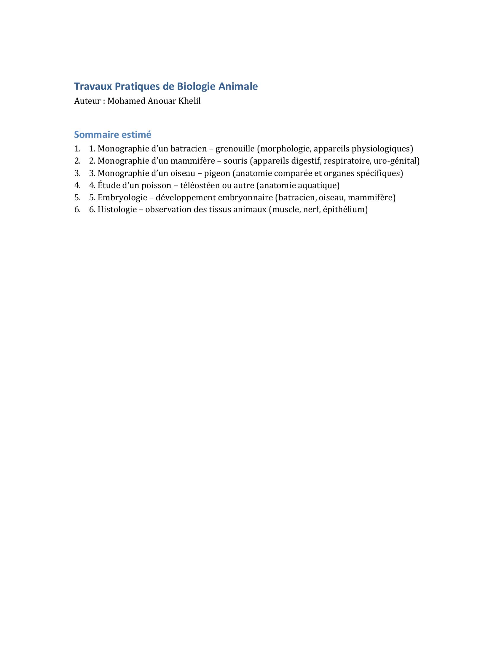 Travaux pratiques de biologie animale