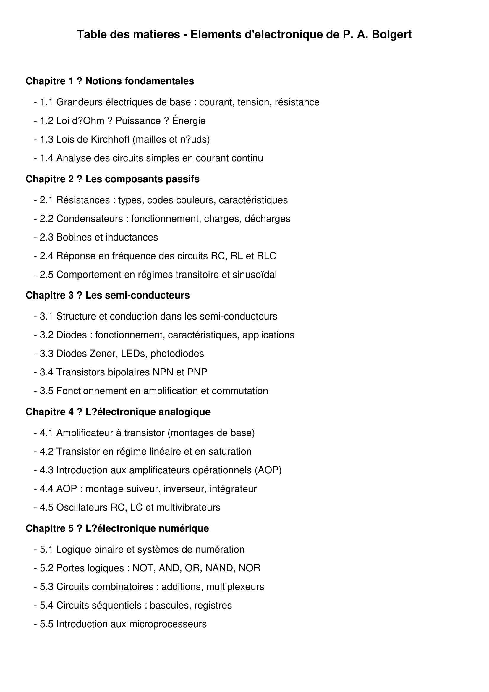 Bolgert, P. & Olmer, P. (1971). Elémements d'électronique . Masson; CIE;