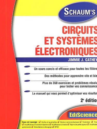 Cet ouvrage présente l'ensemble des notions de base utilisées en électronique : analyse des circuits électriques, systèmes électroniques à transistors, amplificateurs opérationnels... 350 exercices et problèmes résolus illustrent les concepts étudiés et des programmes SPICE permettent au lecteur de simuler le fonctionnement des circuits étudiés. Sommaire : Méthodes d'étude des circuits électriques - Dipôles et quadripôles; Les diodes à semi-conducteurs; Caractéristiques des transistors bipolaires à jonction; Caractéristiques des transistors à effet de champ et des triodes; Étude approfondie des méthodes de polarisation des transistors; Amplificateurs à transistors bipolaires en régime de petits signaux moyenne fréquence, etc.