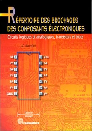 Le répertoire des brochages des composants electroniques est un ouvrage de référence technique destiné aux techniciens, electroniciens, etudiants, bricoleurs et ingénieurs. il propose une présentation claire et synthétique des brochages (connexions internes) de nombreux composants electroniques standards, indispensables pour la conception, l’entretien ou la réparation de circuits.le livre est organisé en plusieurs grandes familles de composants : 1. circuits intégrés logiques (ttl, cmos, etc.) 2. circuits analogiques 3. transistors 4. triacs, thyristors et autres composants de puissance le contenu est généralement présenté sous forme de tableaux, schémas et dessins de brochages pour une consultation rapide et efficace. il est pensé comme un outil pratique au quotidien dans les travaux de prototypage, de dépannage ou de vérification.