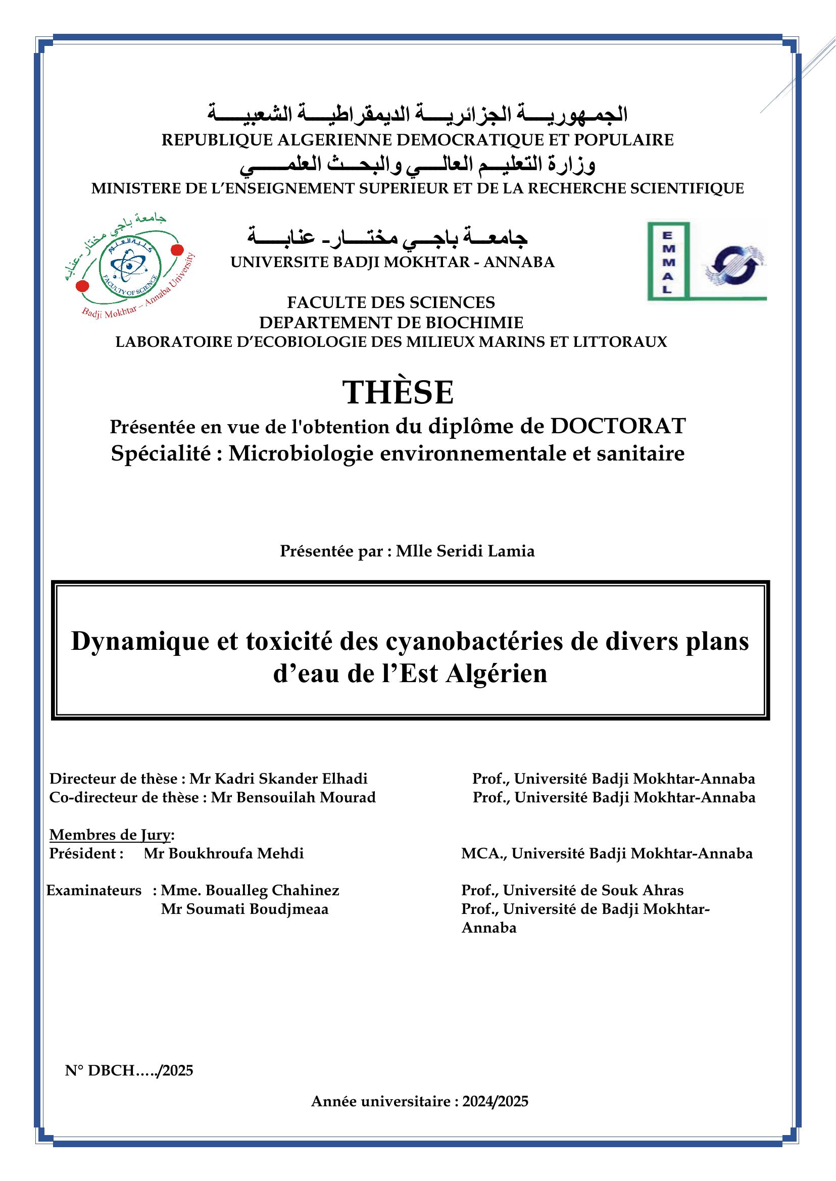Dynamique et toxicité des cyanobactéries de divers plans d’eau de l’Est Algérien