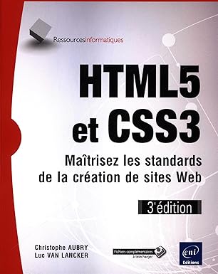 Cet ouvrage sur l'HTML5 et les CSS 3 s'adresse à toute personne appelée à développer, mettre en place, faire vivre un site Web. En effet, pour débuter mais surtout pour progresser dans la conception de sites, il faut inévitablement passer par une bonne compréhension et une parfaite maîtrise du code source des applications Web. Le livre est conçu comme un réel ou… Ce livre sur l'HTML5 et les CSS 3 s'adresse à toute personne appelée à développer, mettre en place, faire vivre un site Web. En effet, pour débuter mais surtout pour progresser dans la conception de sites, il faut inévitablement passer par une bonne compréhension et une parfaite maîtrise du code source des applications Web. Le livre est conçu comme un réel outil de formation, pédagogique de la première à la dernière page, abondamment illustré d'exemples et de captures d'écran et constamment à l'affût des éléments réellement pratiques pour le développeur Web.