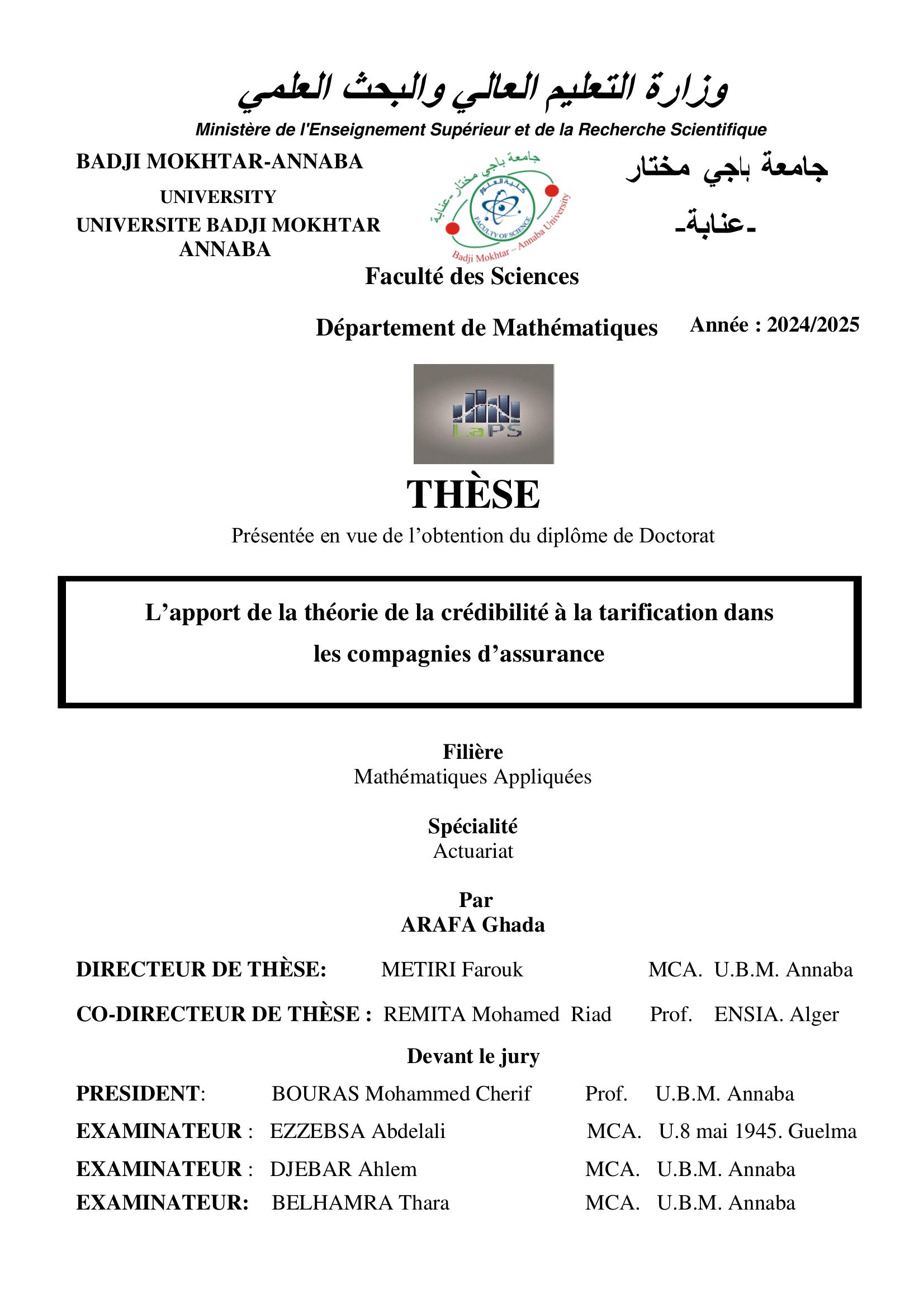 L’apport de la théorie de la crédibilité à la tarification dans les compagnies d’assurance