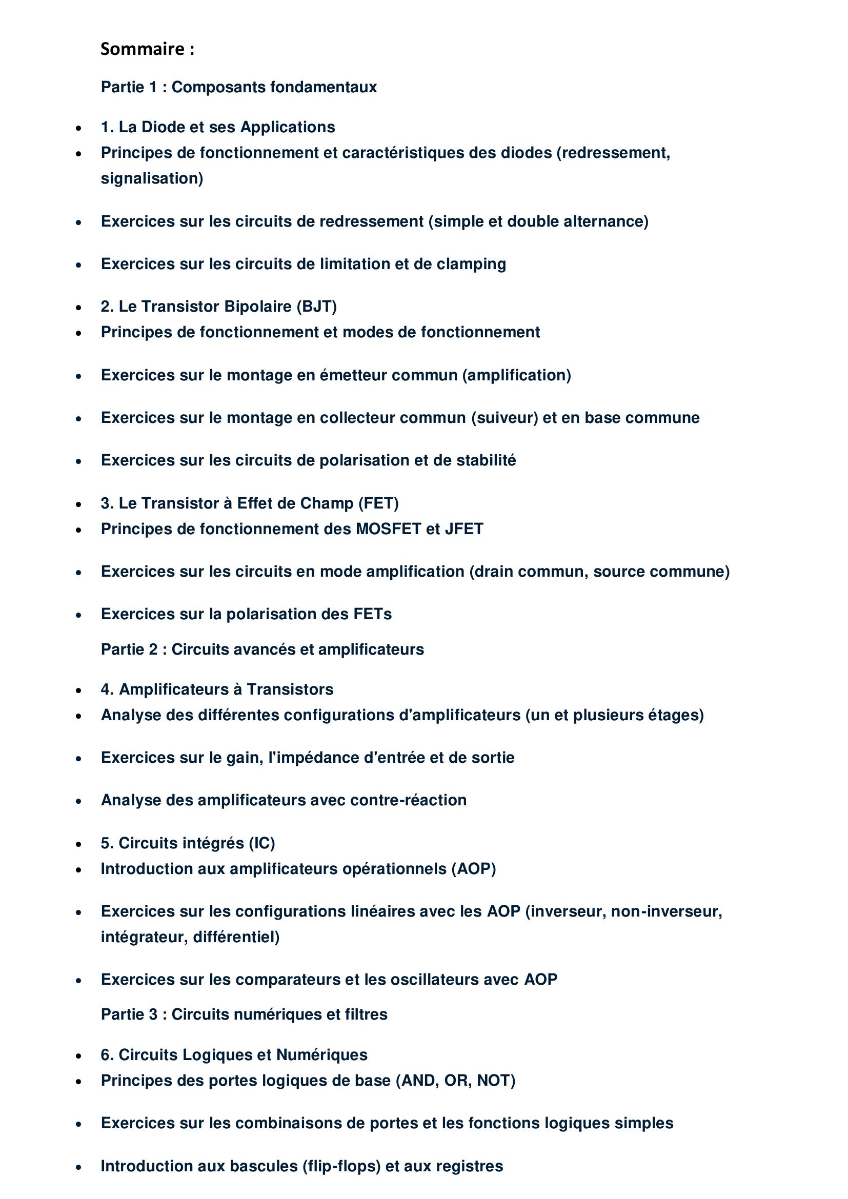 Recueil d'exercices corriges sur les circuits électroniques