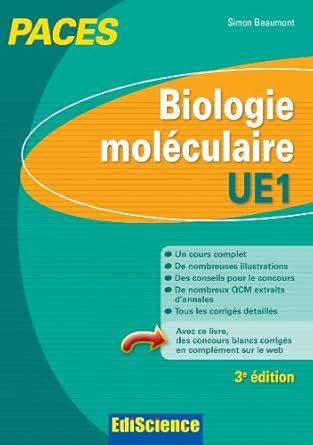 Cet ouvrage est un tout-en-un (50 % cours + 50 % QCM et exercices corrigés) destiné aux étudiants en 1re année Santé (PACES) pour la préparation des concours Médecine-Pharmacie-Dentaire-Sage femme. Il présente de façon claire et progressive l'ensemble des notions de Biologie moléculaire à connaître, aide l'étudiant à tester ses connaissances et à s'entraîner aux modalités du concours.