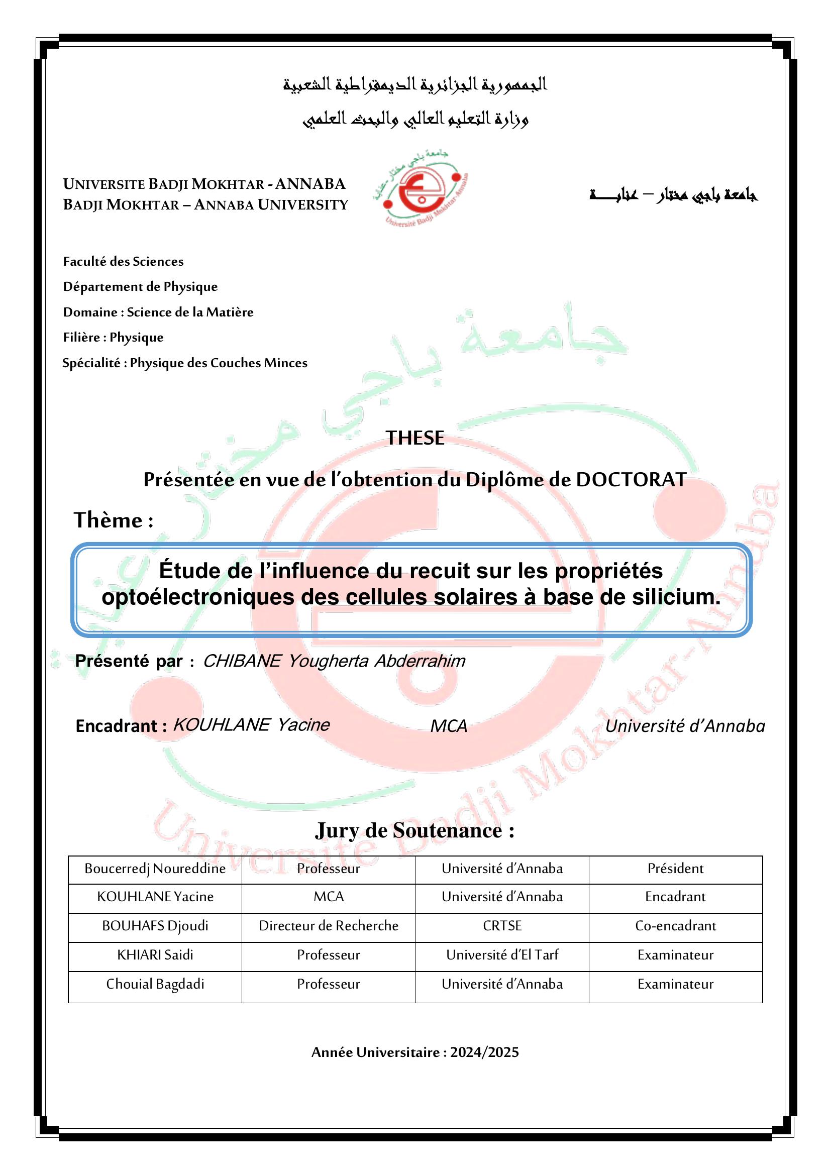 Étude de l’influence du recuit sur les propriétés optoélectroniques des cellules solaires à base de silicium