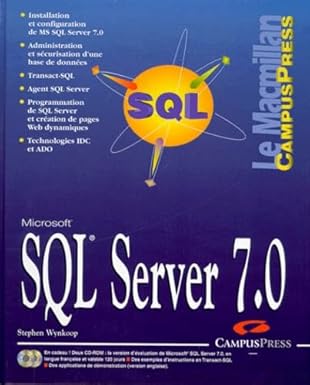 Grâce à ce manuel, vous apprendrez à installer et à configurer SQL Server 7.0. Vous découvrirez toutes les techniques pour concevoir, administrer, sécuriser une base de données et optimiser ses performances, dans des conditions variables. Vous vous familiariserez avec le langage SQL et Transact-SQL pour créer des objets et extraire des données, et utiliserez les techniques de réplication pour optimiser l'accès aux données de votre base. Vous saurez planifier des tâches avec le nouvel Agent SQL Server. Enfin, vous apprendrez à développer une base de données sur Internet et à créer des pages Web dynamiques grâce aux technologies IDC et ADO.