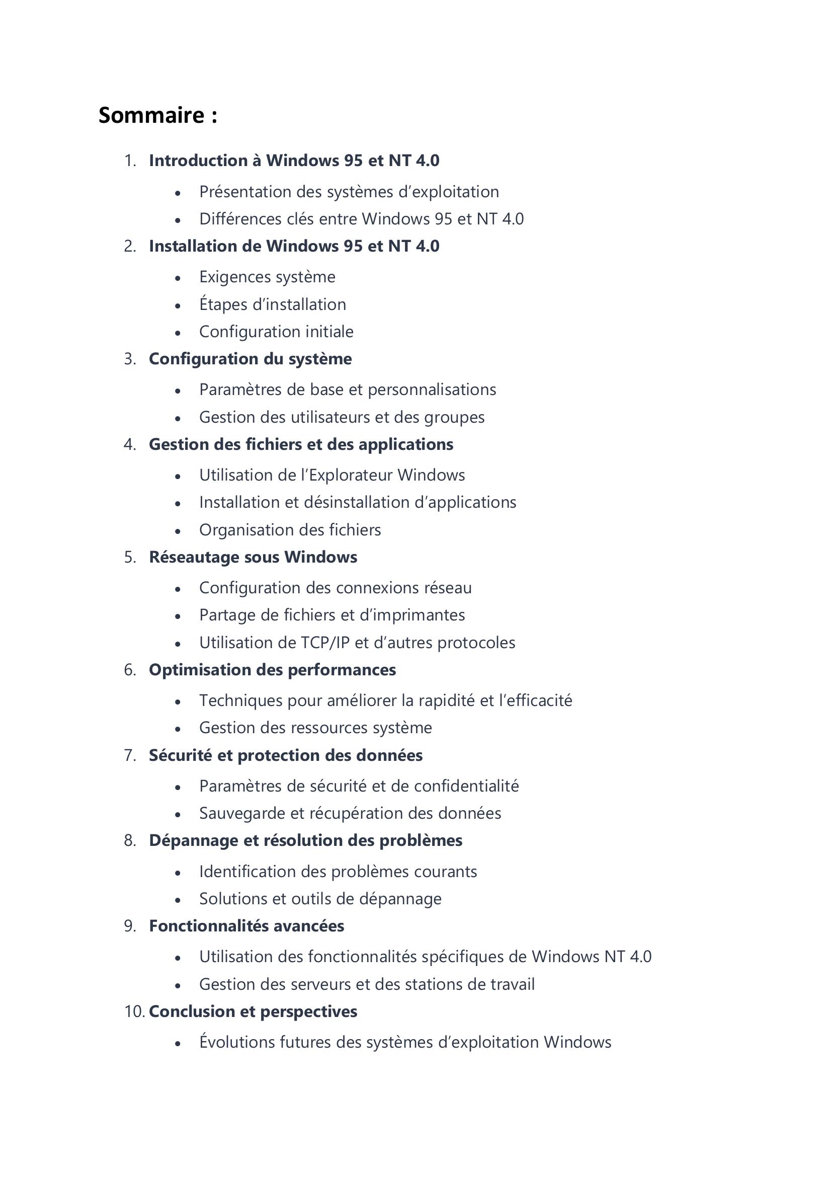 Cet ouvrage couvre une variété de sujets, allant des bases de l’installation et de la configuration des systèmes d’exploitation à des techniques plus avancées pour maximiser leur performance et leur efficacité. Honeycutt fournit des conseils pratiques, des astuces et des stratégies pour tirer le meilleur parti des fonctionnalités offertes par Windows 95 et NT 4.0.