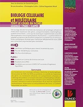 Cet ouvrage présente en 200 fiches les notions de biologie cellulaire et moléculaire enseignées dans les premières années d'études supérieures (Sciences de la Vie et de la Santé). Des "fiches techniques", des encarts biomédicaux, des QCM et des annales complètent le cours. Découvrez dès le 24 septembre 2012 le nouveau site biologie-cellulaire-moleculaire.net complémentaire de cet ouvrage : quiz interactifs corrigés et commentés par chapitre, sites web spécialisés, veille sur ces disciplines. Les enseignants membres du Club enseignants du supérieur bénéficient de figures à projeter pour animer leurs cours.