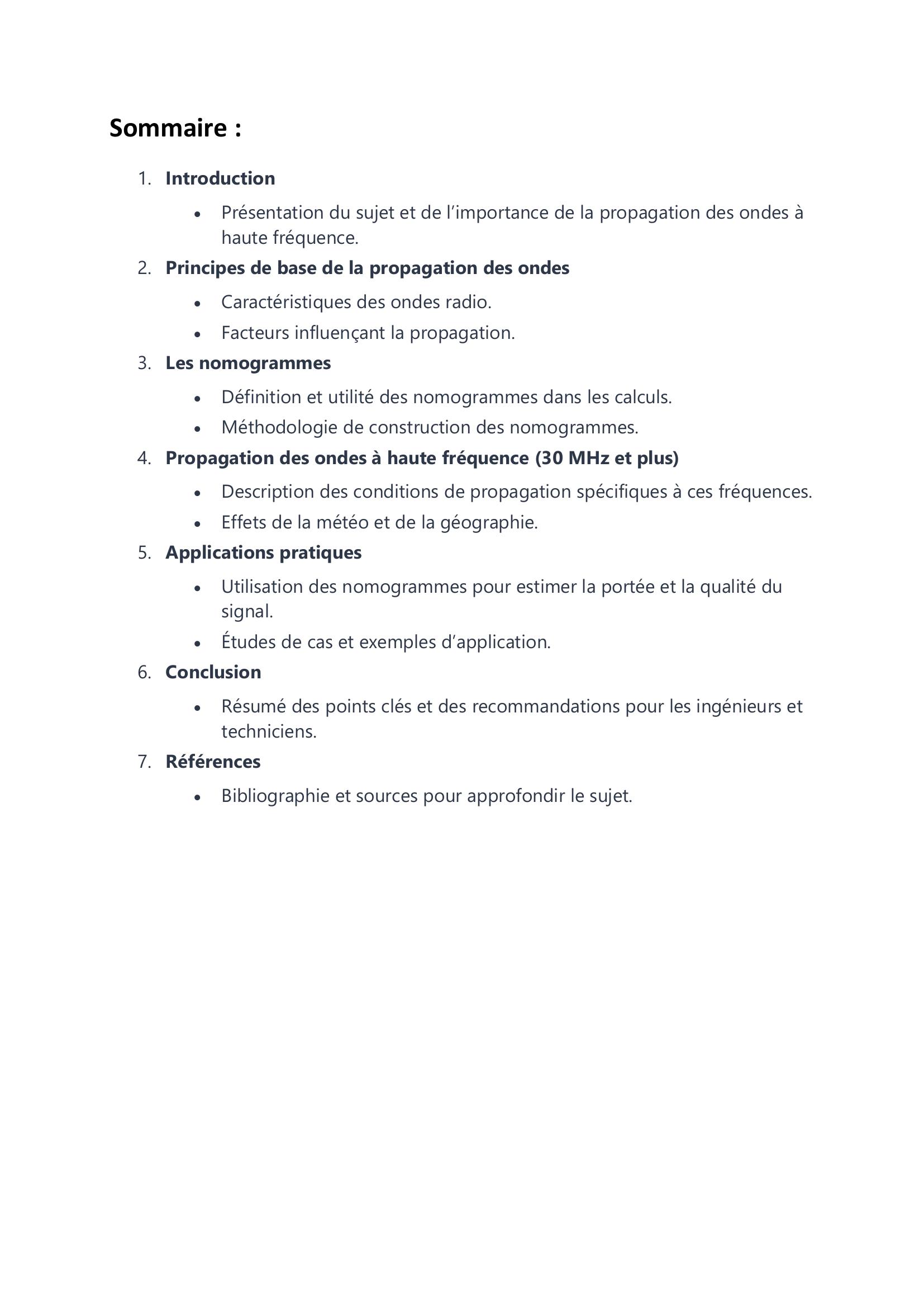 Cet ouvrage traite des méthodes de calcul de la propagation des ondes radio à haute fréquence. L’auteur se concentre sur l’utilisation de nomogrammes, qui sont des outils graphiques permettant de résoudre des équations complexes de manière simplifiée.