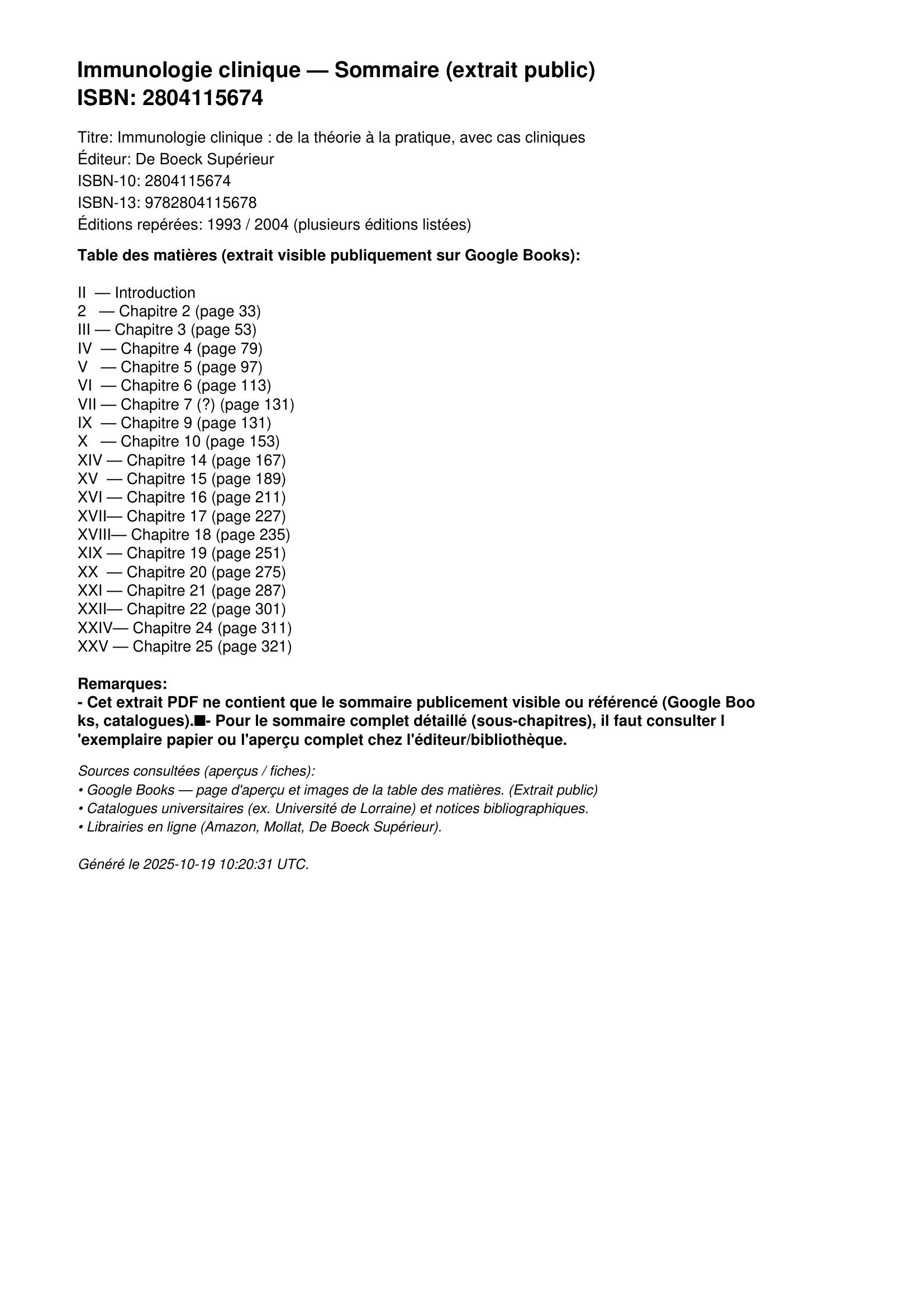Brostoff, J. et al. (1993). Immunologie clinique . De Boeck université;