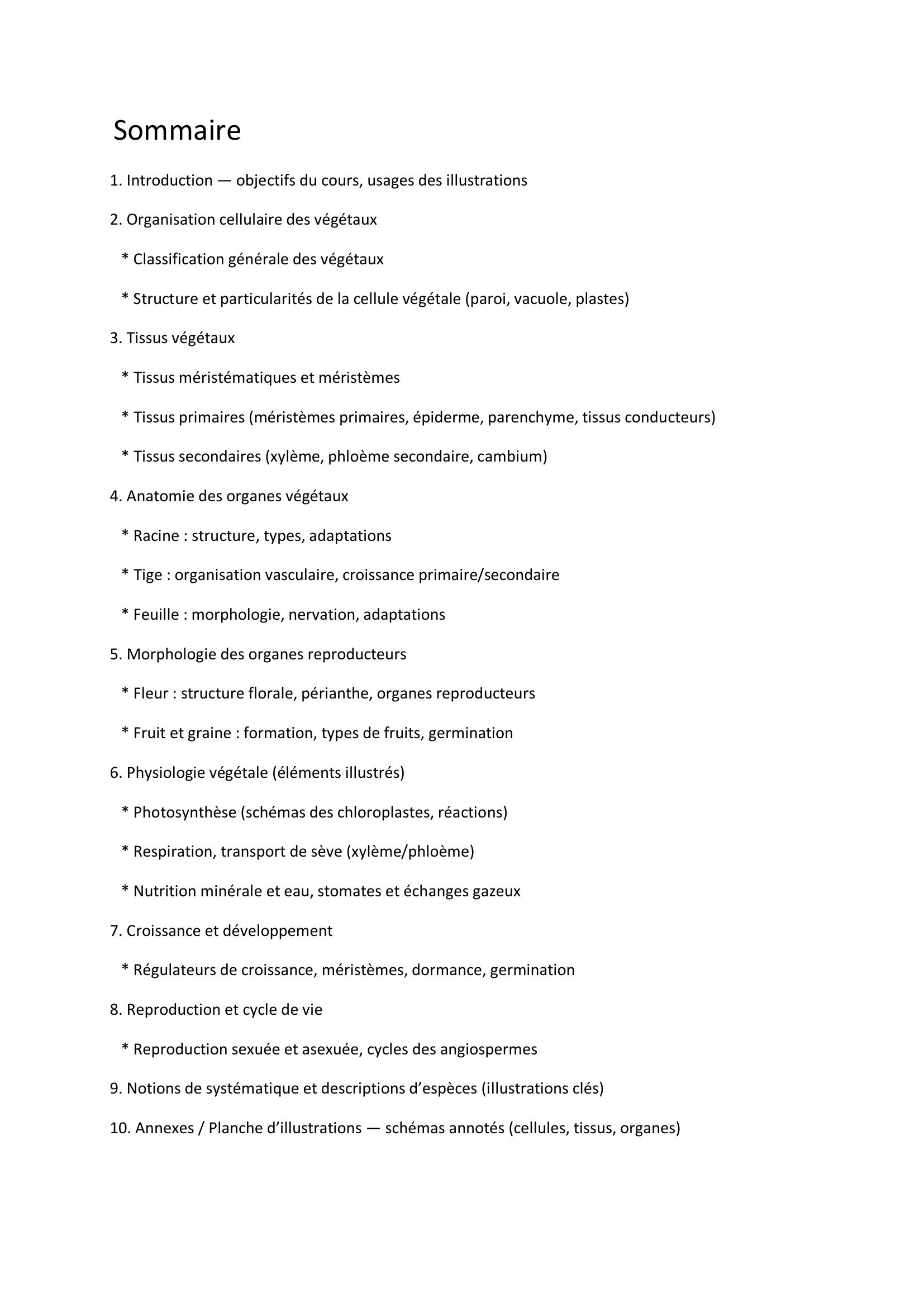 Illustrations du cours, de biologie végétale