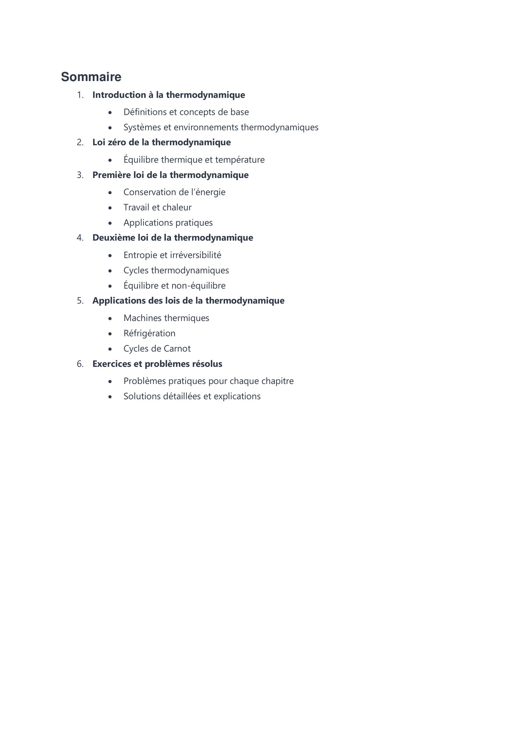 Cet ouvrage thermodynamiques, et les applications pratiques dans divers domaines, tels que l’ingénierie et la chimie. L’ouvrage vise à renforcer la compréhension des étudiants à travers des exemples, des démonstrations et des problèmes à résoudre.