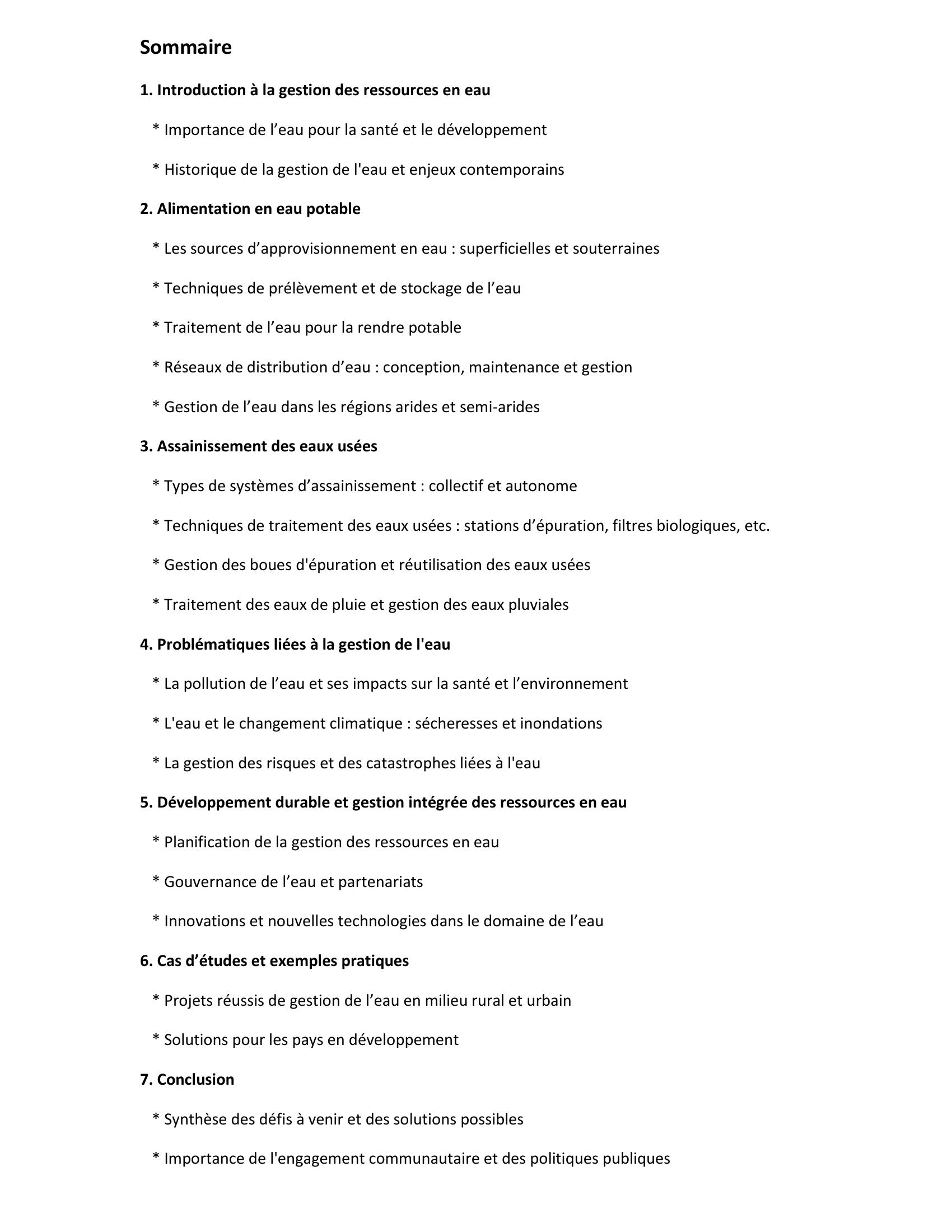 Ce volume traite des techniques et des principes essentiels liés à la gestion des systèmes d'approvisionnement en eau potable et d'assainissement. L'ouvrage présente des solutions modernes pour la distribution d'eau dans les zones urbaines et rurales, en prenant en compte les aspects techniques, environnementaux et sociaux. Il aborde également les défis liés à la gestion des eaux usées et à l'assainissement, essentiels pour préserver la santé des populations et protéger les écosystèmes aquatiques. L'ouvrage propose des approches adaptées aux besoins spécifiques des communautés et aux contraintes locales, tout en mettant l'accent sur l'importance de la gestion durable des ressources en eau.
