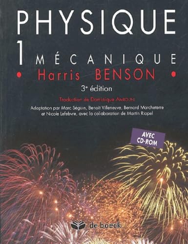 Cette troisième édition, entièrement revue et corrigée, préserve les caractéristiques qui ont fait la force des précédentes, notamment la clarté, la concision et la cohérence du texte, de même que l'intégration d'éléments d'histoire des sciences, la qualité de la mise en page, la rigueur du code de couleurs utilisé dans les figures et le réalisme de celles-ci. A la fin des chapitres, on trouve plusieurs rubriques de nature pédagogique : un résumé, une liste de termes importants, des séries de questions utiles pour la révision du contenu théorique du chapitre ainsi que des séries d'exercices et de problèmes ; les réponses à tous les exercices et problèmes sont données à la fin de l'ouvrage. Les logiciels de Physique animée intégrée dans le CD-Rom joint à l'ouvrage viennent compléter certaines sections du livre et permettent de visualiser des phénomènes qui sont difficiles à représenter au moyen de figures statiques. Physique I : Mécanique est le premier des trois tomes de la série. On y traite, à la suite d'un chapitre introductif, des éléments suivants : vecteurs, cinématique à une dimension, inertie et mouvement à deux dimensions, dynamique de la particule, travail et énergie, conservation de l'énergie, quantité de mouvement, systèmes de particules, rotation d'un corps rigide autour d'un axe fixe, équilibre statique et moment cinétique, gravitation, solides et fluides, oscillations, température, dilatation thermique et loi des gaz parfaits, premier principe de la thermodynamique ique, théorie cinétique, entropie et deuxième principe de la thermodynamique.