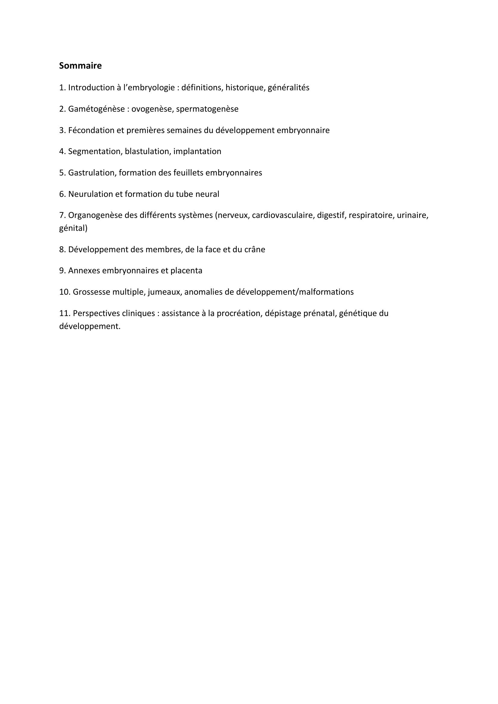 Cet ouvrage étude les parties suivantes: embryologie générale comparée, embryologie générale humaine