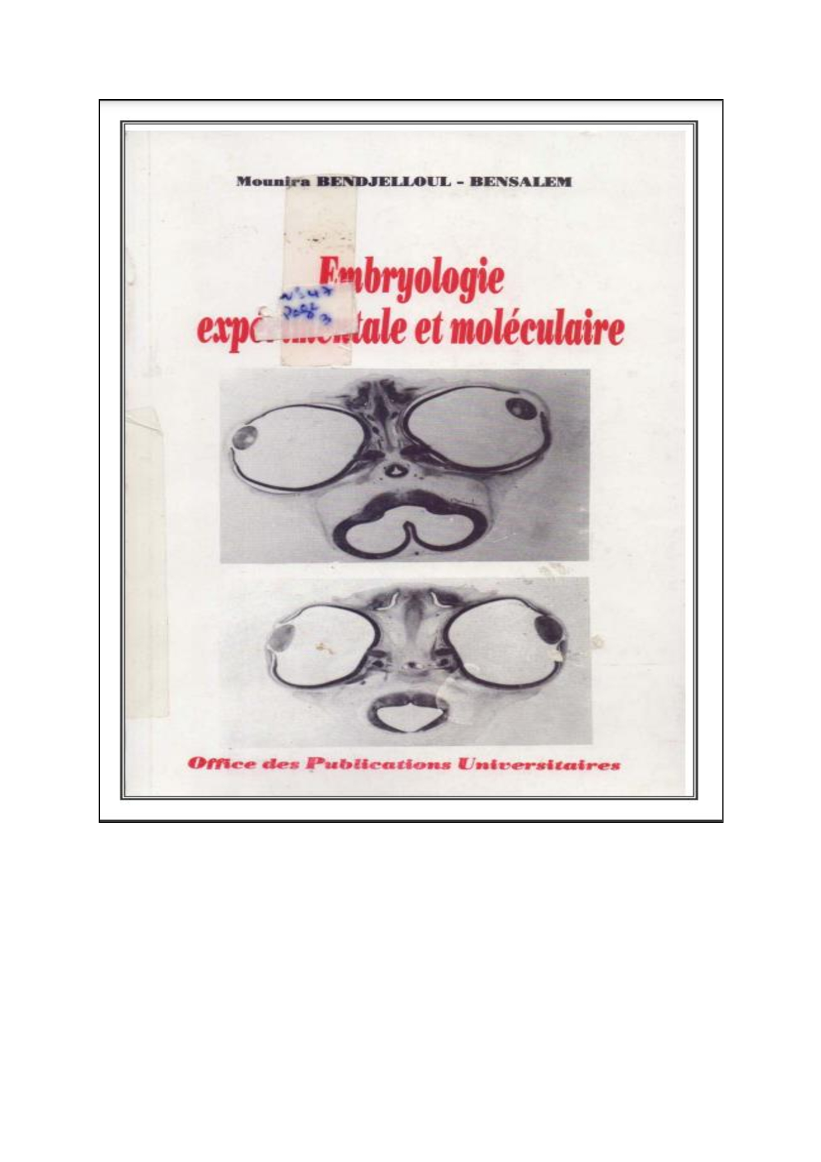 Bensalem Bendjelloul, M. (1996). Embryologie expérimentale et moléculaire . OPU;