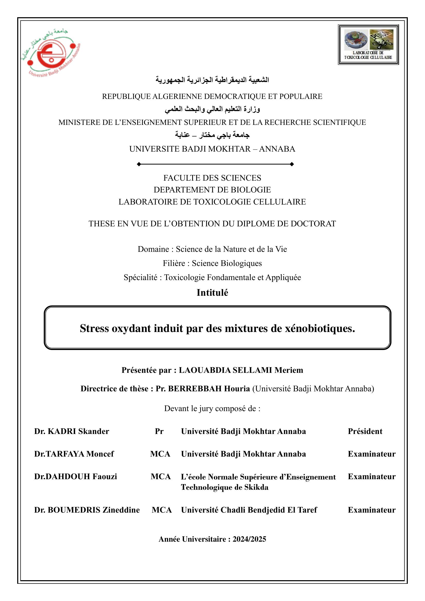 Stress oxydant induit par des mixtures de xénobiotiques