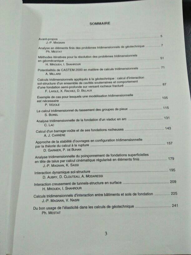En mars 1987, l'Ecole nationale des ponts et chaussees organisait ses premieres journees d'etudes sur les elements finis en geotechnique, auxquelles participerent plus de cent specialistes de tous les secteurs de la geotechnique francaise. Un ouvrage des Presses des Ponts et Chaussees intitule La methode des elements finis dans les projets -de geotechnique regroupa les textes prepares pour ces journees d'etudes, classes en quatre themes : hydraulique des sols et barrages, tunnels et ouvrages souterrains, interactions sols-structures et perspectives. En 1992, les journees d'etude cederent la place a un colloque international , regroupant de tres nombreuses communications sur l'informatique et la mesure, la modelisation numerique (methodes et programmes de calcul ; applications), les systemes-experts, les bases de donnees et l'analyse des donnees. Des journees d'etude furent organisees de nouveau en 1993 (), puis en 1996 (). Les journees d'etude, organisees en novembre 1998, ont ete consacrees a, ce qui nous parait etre l'evolution essentielle de ces dernieres annees : le calcul tridimensionnel du comportement des sols et des ouvrages. Le programme comportait une conference introductive sur les developpements recents des calculs en elements finis et des seances consacrees aux evolutions en cours des codes de calcul, a des exemples de calculs tridimensionnels et aux limites des calculs tridimensionnels. Les textes prepares pour ces journees d'etudes ont ete regroupes dans le present ouvrage. Quelles evolutions se sont produites depuis 1987 ? La premiere et la plus indiscutable est le progres de, l'informatique, et pas seulement pour le calcul ! En 1987, nous avions prepare l'ouvrage issu des journees d'etudes avec des fichiers de texte transmis sur disquettes et avions procede a de longues seances de collages de figures... En 1998, les fichiers arrivent par courrier electronique et contiennent aussi bien le texte que les figures, souvent sorties directement des ordinateurs de calcul... Il est vrai qu'il reste un petit obstacle... les versions incompatibles des logiciels de traitement de texte... Mais nous allons tout de meme vers un avenir meilleur ! En matiere de calcul, l'ouvrage de 1987 contenait seulement deux dessins de maillages tridimensionnels simples (un calcul de tunnel en France et un calcul d'interaction d'immeuble et de son massif de fondation en Asie du Sud-Est, tire d'un article de revue). Dix annees ont suffi pour developper dans tous les domaines de la geotechnique des, outils de calcul tridimensionnels adaptes aux nouvelles capacites des ordinateurs. Et tous les logiciels se dotent de procedures de controle de qualite et d'interfaces agreables pour les utilisateurs. Faut-il en deduire que la geotechnique de demain ne fera plus que des calculs tridimensionnels, en elements finis, en differences finies ou par les methodes de la mecanique des solides ? Les discussions des journees d'etudes de novembre 1998 ont rappele que l'application de methodes de calcul complexes necessite plus de parametres que ceux que l'on a determines au cours du XX ? siecle... et que, dans beaucoup de cas, le calcul tridimensionnel se retrouve tellement simplifie qu'il ne fait guere plus que le calcul bidimensionnel ou l'application d'abaques. L'avenir du calcul tridimensionnel en geotechnique depend donc pour beaucoup des evolutions du contenu des reconnaissances geotechniques, des types d'essais qu'il sera possible de realiser, de la representativite des resultats de ces essais par rapport au comportement des terrains naturels, peut-etre aussi de la description detaillee du deroulement des travaux de construction. Paradoxalement, le perfectionnement de l'outil de calcul ne pourra faire evoluer la pratique que s'il est accompagne d'une modification de l'organisation des reconnaissances et si l'on mene a bien une nouvelle operation de validation de toutes les methodes de calcul par rapport au comportement reel des sols et des ouvrages. Dans le cas le plus favorable, un tel travail demandera de cinq a dix annees, s'il n'est pas en concurrence avec d'autres taches collectives prioritaires, comme l'achevement de l'Eurocode 7 et de ses textes d'application jusqu'au debut du XXI ? siecle. Plus probablement, au cours des prochaines annees, et en tout cas avant les prochaines journees d'etudes de l'ENPC sur les calculs numeriques en geotechnique, le calcul tridimensionnel restera reserve a la recherche et aux etudes d'ouvrages complexes et importants, mais en enrichissant par sa presence les etudes classiques et les calculs bidimensionnels qui sont deja frequents dans les etudes d'hydraulique, de tunnels et de soutenements. Nous esperons donc que cet ouvrage permettra une meilleure connaissance et utilisation des outils de calcul tridimensionnel en elements finis, differences finies et mecanique des blocs et suscitera eventuellement des vocations pour participer aux developpements futurs de ces methodes pour la pratique du metier d'ingenieur.
