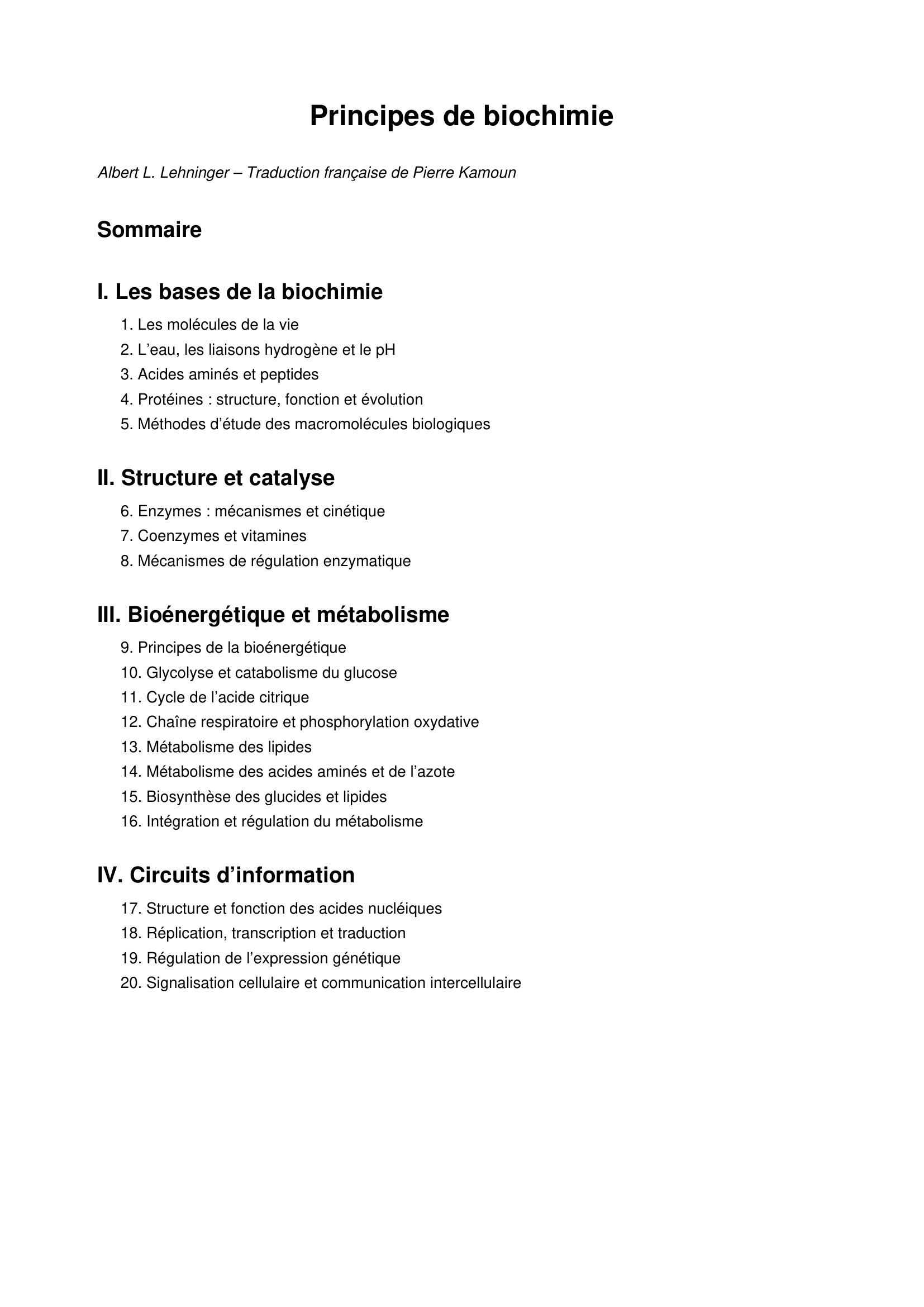 Lehninger, A. (1982). Principes de biochimie . Flammarion;