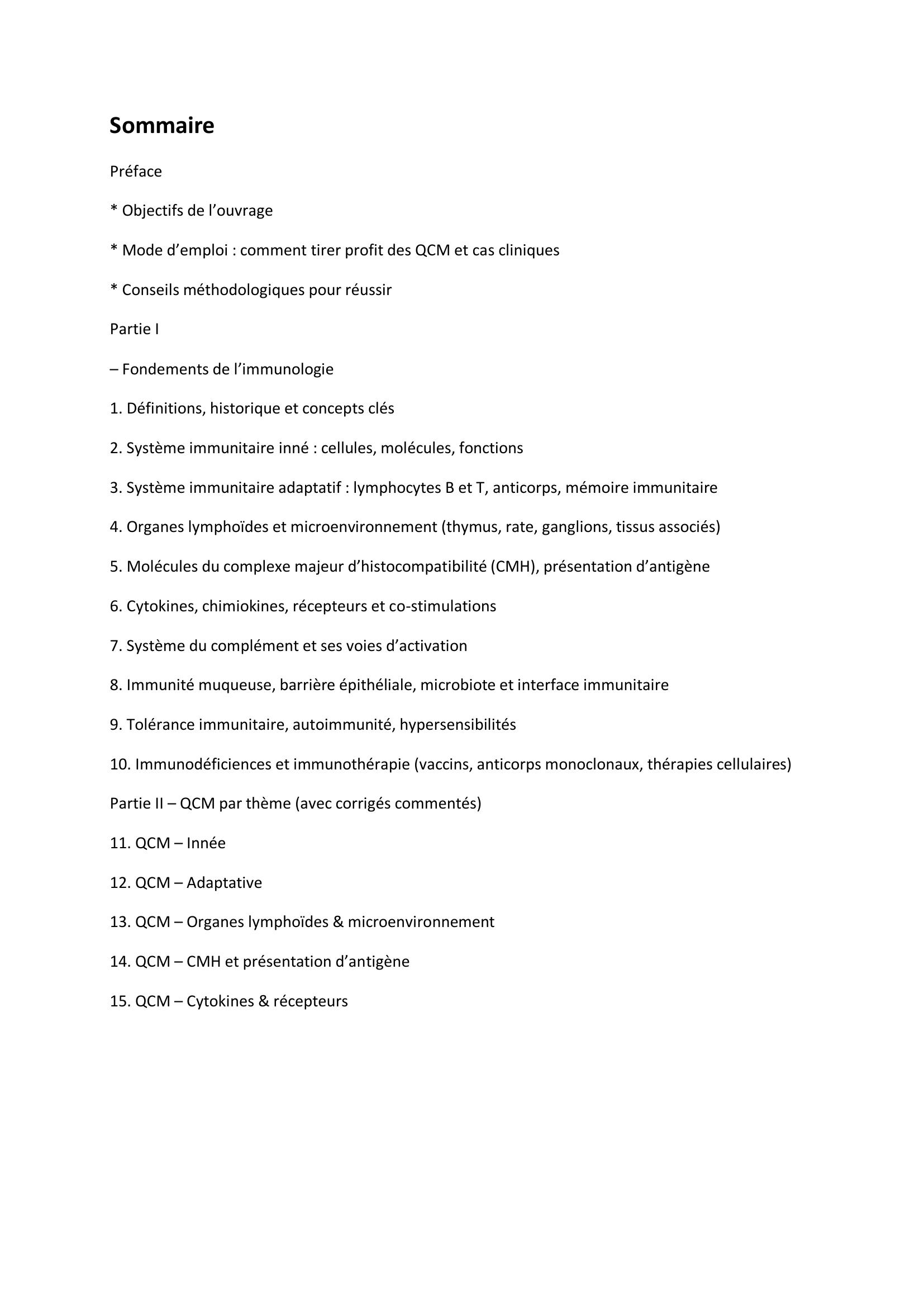 Immunologie : QCM, Cas Cliniques QCM, Corriges & Commentés