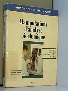Cet ouvrage, accessible aux élèves préparant un baccalauréat technologique de Biochimie-Génie biologique, est destiné aux étudiants poursuivant des études technologiques dans les disciplines biologiques : BTS Analyses biologiques, Biochimie, Biotechnologies, DUT. Cette nouvelle édition revue et corrigée présente l'ensemble des manipulations de base de l'analyse biochimique actualisée. Elle intègre des protocoles expérimentaux adaptés à l'apprentissage, l'utilisation et le contrôle des analyses en spectrophotométrie, électrophorèses, CLPH, CPG... Par une démarche progressive intégrant un grand nombre d'exercices corrigés de manière détaillée, ce livre permet à l'étudiant de préparer ses séances de travaux pratiques pour en tirer le profit maximal. Pour le professeur, il constitue, à la fois, un recueil de savoir-faire et un ensemble de protocoles expérimentaux concernant les domaines de l'analyse médicale, de l'agro-alimentaire, du contrôle des eaux, qui font de cet ouvrage un outil précieux.