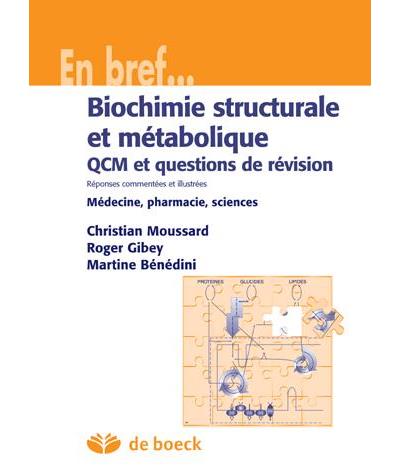 Il s’agit d’un ouvrage de **révision et d’entraînement(QCM + questions) en biochimie structurale et métabolique, destiné principalement aux étudiants en médecine, pharmacie et autres sciences de la vie. ([Librairie Mollat Bordeaux