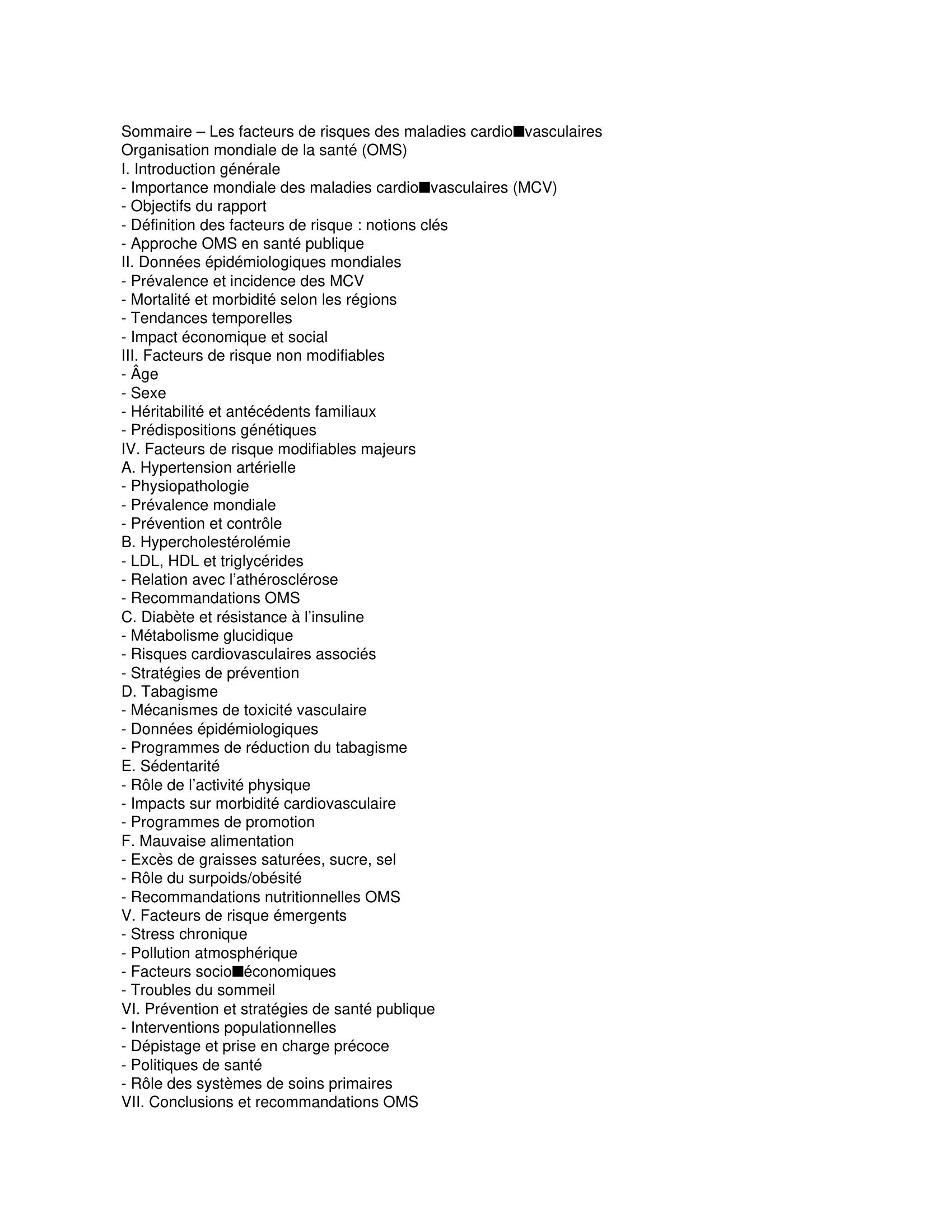 Organisation mondiale de la santé (2000). Les facteurs de risques des maladies cardio-vasculaires . OMS;