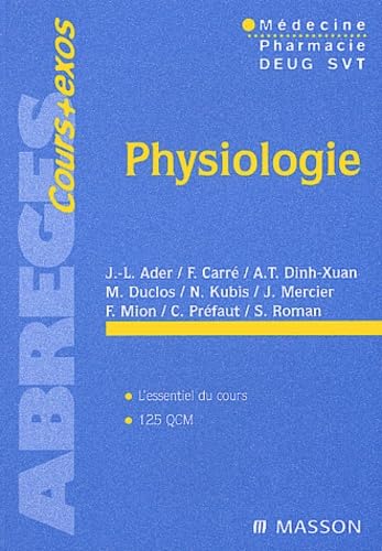 L'ouvrage Cet Abrégé cours + exos offre une approche pédagogique et précise de l'ensemble des connaissances de physiologie indispensables à l'étudiant de premier cycle. Il comporte 8 grandes parties développant successivement : • la physiologie cellulaire, • la physiologie générale, • la physiologie respiratoire, • la physiologie cardio-vasculaire, • la physiologie rénale, • la physiologie digestive, • la physiologie endocrinienne, • la neurophysiologie. Chaque chapitre suit un plan rigoureux qui expose systématiquement les objectifs d'apprentissage et développe de façon claire et synthétique les notions incontournables de physiologie. Les nombreux tableaux, notes en marge et l'index détaillé renforcent l'aspect pratique de l'ouvrage. Enfin, quelque 120 illustrations viennent éclairer le texte et 125 QCM offrent un véritable outil d'auto-évaluation et d'entraînement. Le public • Les étudiants du le, cycle des études de médecine et de pharmacie. • Les étudiants en DEUG SVT. • Les étudiants en STAPS.