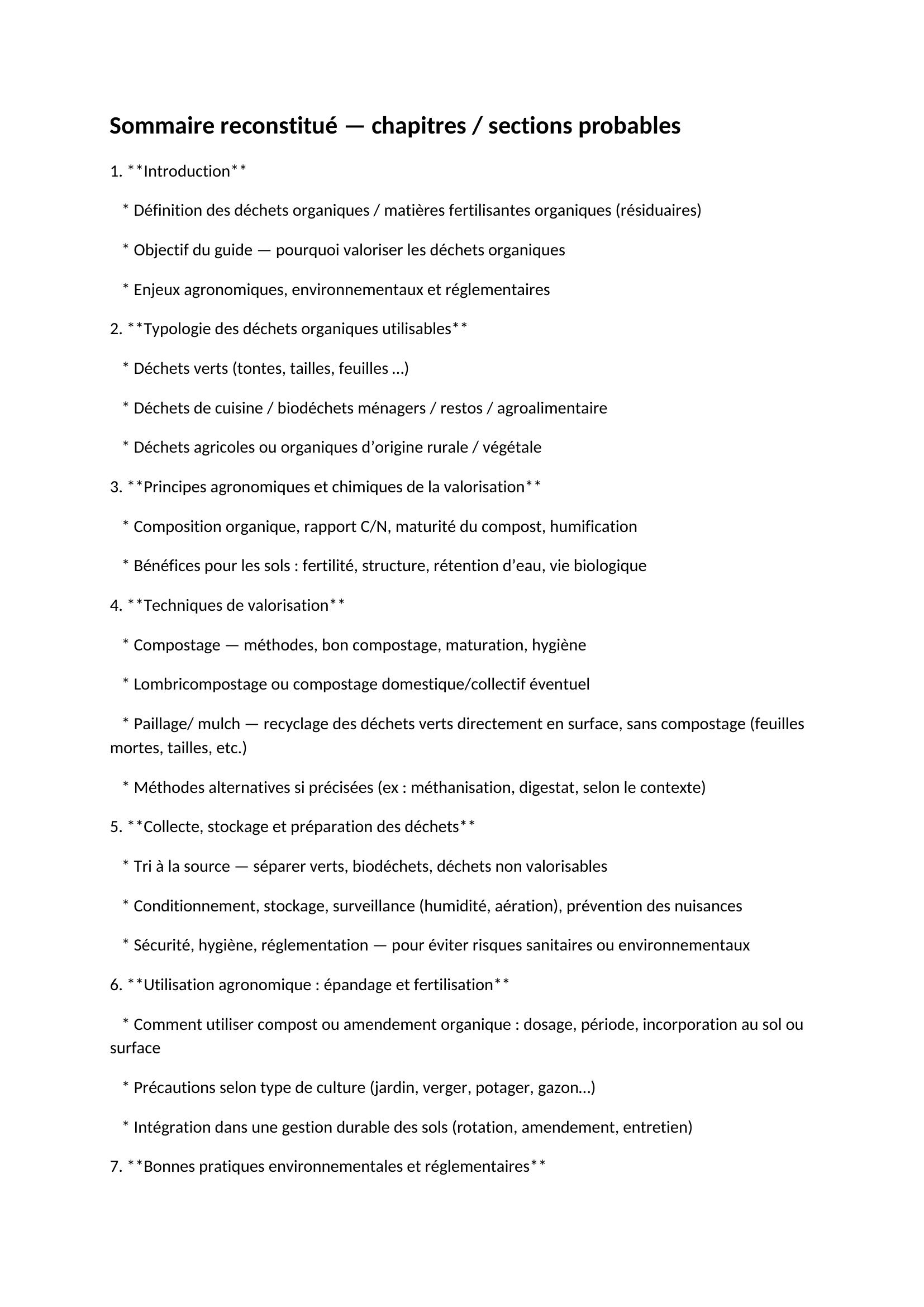 Ce Guide de bonnes pratiques traite de l'utilisation de matières organiques issues du traitement des déchets urbains en vue d'une végétalisation lors de la restauration des sols dégradés. Présenté sous forme de fiches, il décrit les diverses matières organiques utilisables, en précisant les conditions de leur mise en oeuvre dans le contexte de la végétalisation. Il aborde également les aspects réglementaires et normatifs et propose un schéma d'organisation d'une filière de valorisation opérationnelle. De nombreux exemples d'utilisation de ces produits en végétalisation de pistes de ski, d'aménagements routiers, de centres d'enfouissement technique ou d'aménagements paysagers urbains, tant en France qu'à l'étranger, font de cet ouvrage un outil pratique et inédit pour tous ceux qui conduisent des opérations de réhabilitation en sites difficiles. Ce guide est destiné aux opérateurs et maîtres d'oeuvre qui découvriront, ou approfondiront, les diverses possibilités et contraintes d'utilisation de ces produits particuliers en reconstitution de sols. Ils pourront ainsi réaliser des opérations de réhabilitation environnementales de qualité.