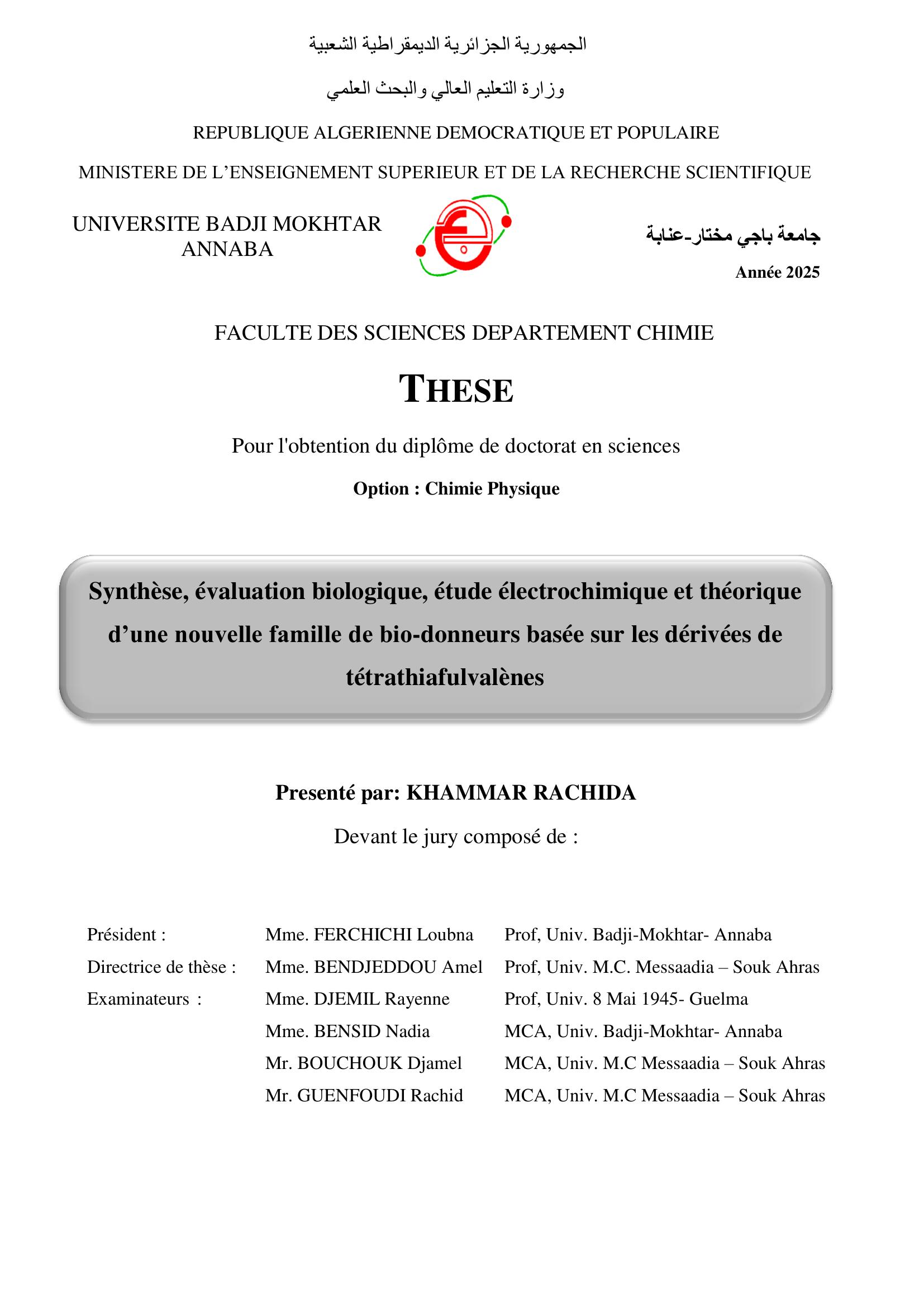 Synthèse, évaluation biologique, étude électrochimique et théorique d’une nouvelle famille de bio-donneurs basée sur les dérivées de tétrathiafulvalènes