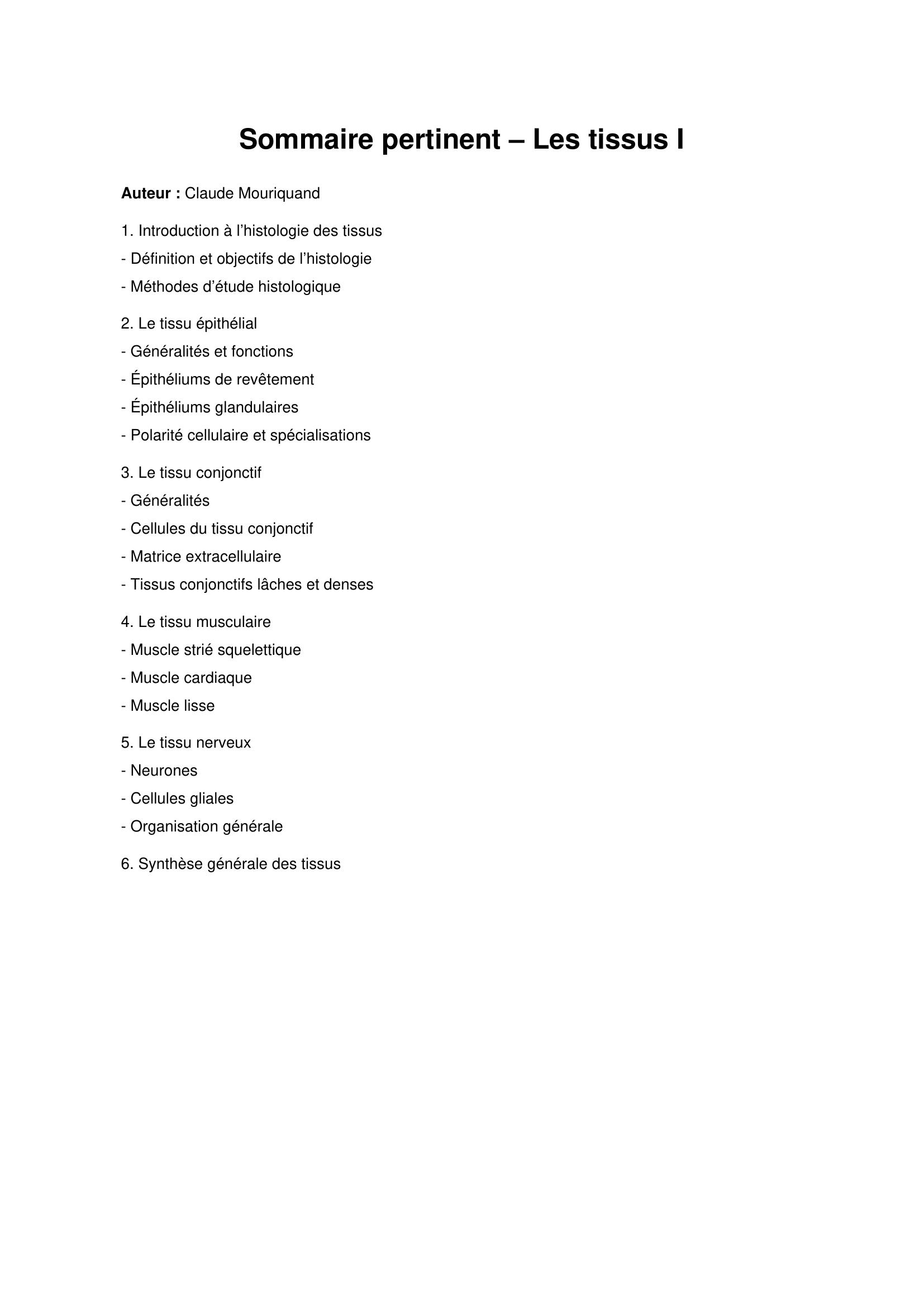Cet ouvrage étude les titres suivants: Généralités sur les tissus- le tissu musculaire- le tissu nerveux- les vaisseaux sanguins