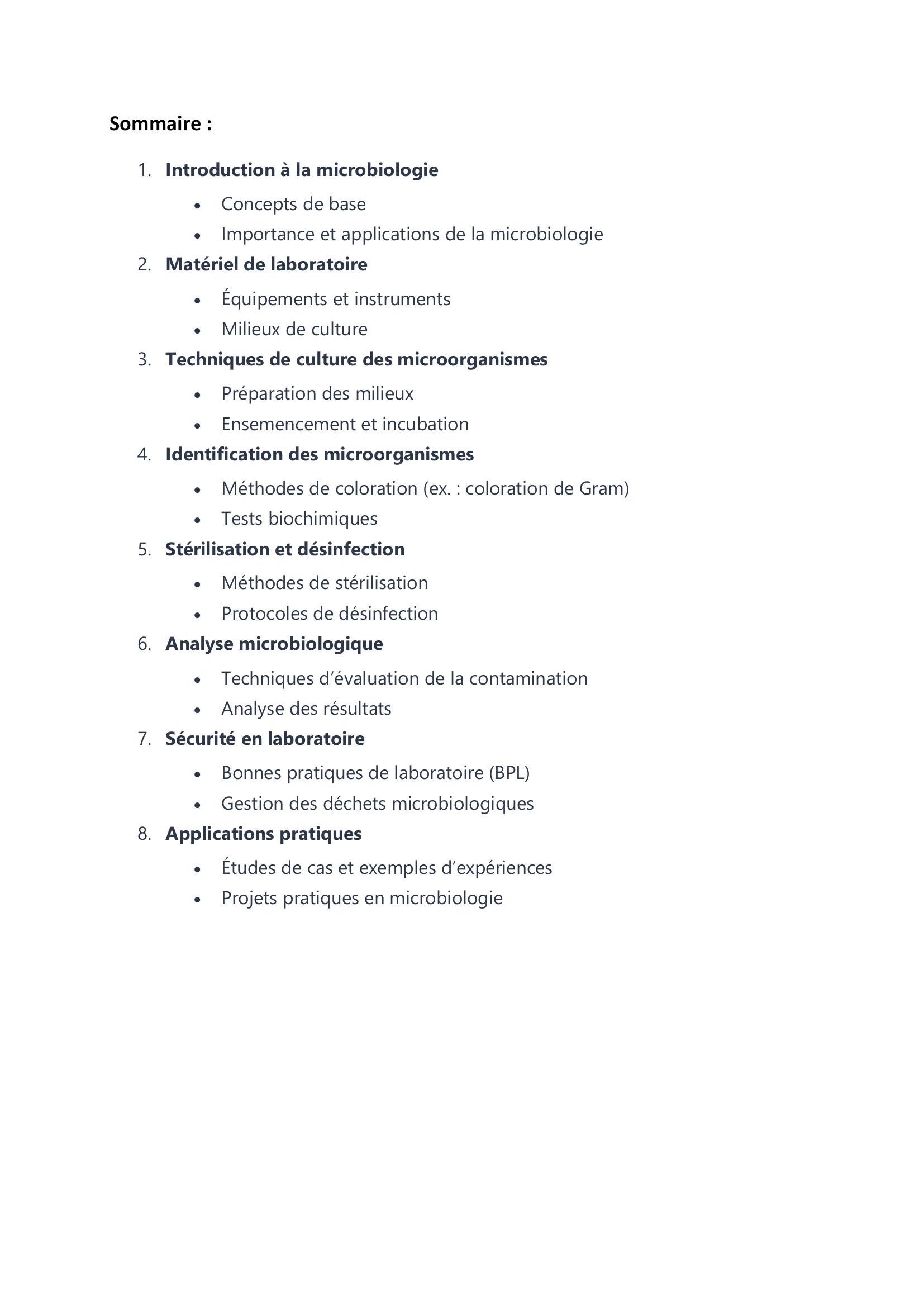 Cet ouvrage est une ressource précieuse pour ceux qui souhaitent acquérir des compétences pratiques en microbiologie, en offrant une combinaison de théorie et d’applications pratiques adaptées aux besoins des étudiants et des professionnels.