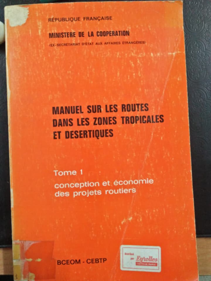 Le "Manuel sur les routes dans les zones tropicales et désertiques, T1 : Conception et économie des projets routiers" est une publication de référence des années 70, réalisée par le Ministère de la Coopération, le CEBTP (Centre Expérimental de Recherche et d'Études du Bâtiment et des Travaux Publics) et le BCEOM (Bureau Central d'Études pour les Équipements d'Outre-Mer), couvrant les aspects techniques (conception) et économiques des projets routiers dans des environnements difficiles, un document historique important pour les infrastructures en pays en développement.