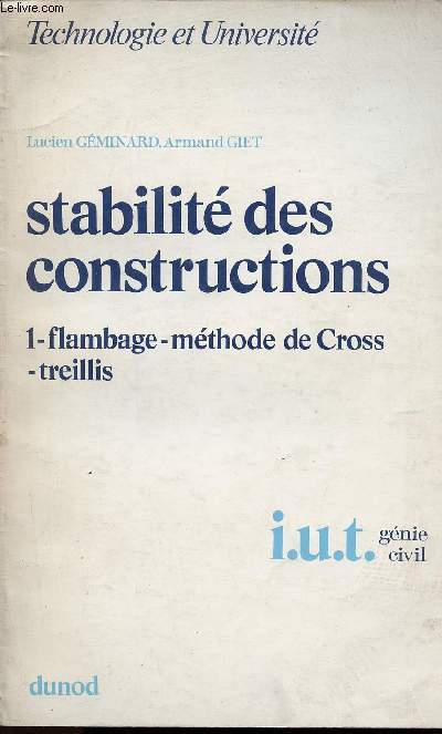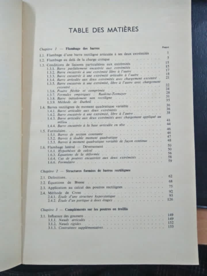 un ouvrage fondamental de l'ingénierie des structures publié par Dunod en 1971, se concentrant sur le Flambage, la méthode de Cross et l'analyse des Treillis, essentiel pour comprendre le comportement des structures sous charge, disponible en plusieurs éditions et souvent vendu en occasion.