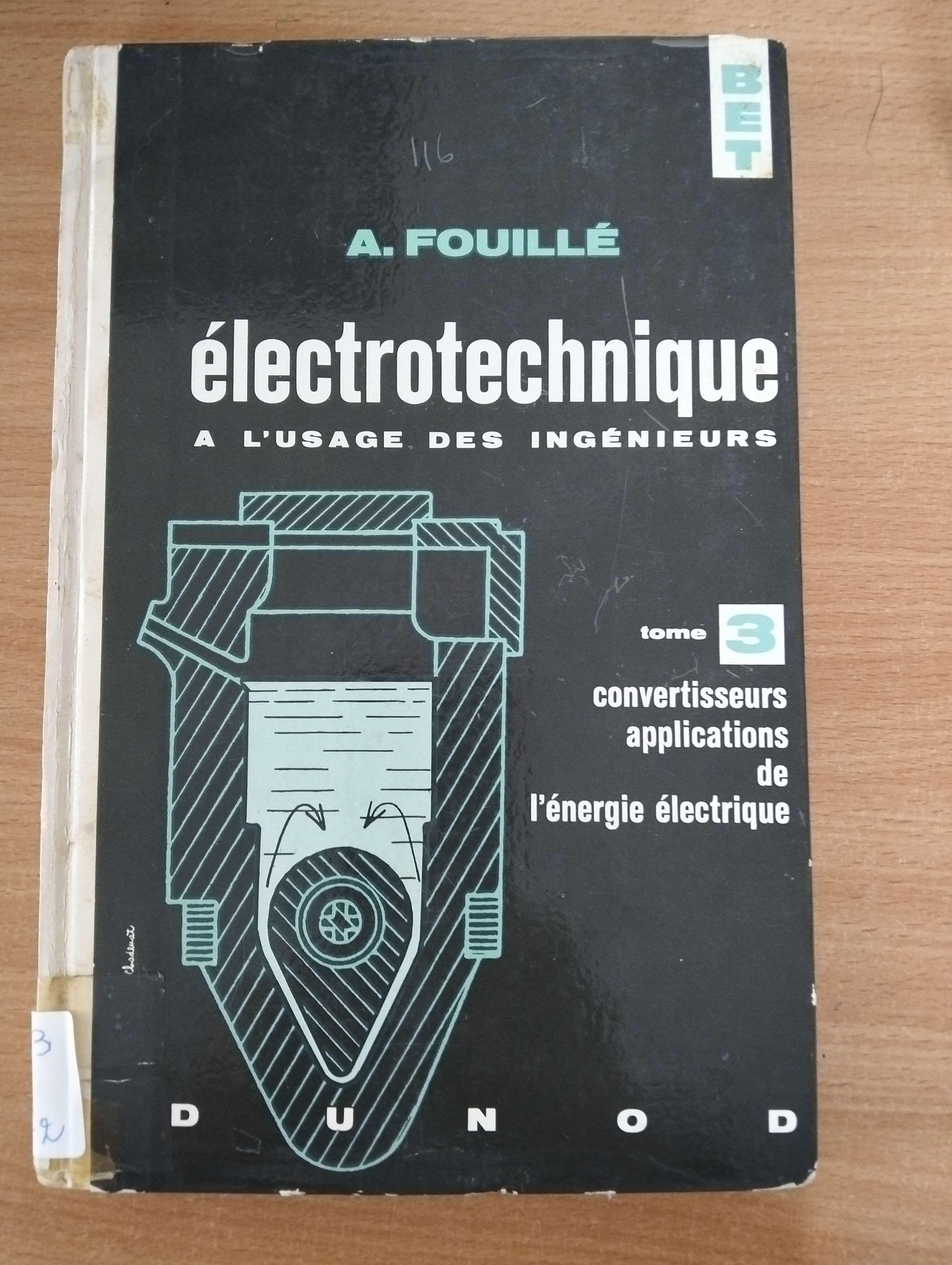 Le livre Électrotechnique. T3 ,Convertisseurs, applications de l’énergie électrique d’André Fouillé (1966) est destiné aux ingénieurs et traite de la transformation et de l’utilisation de l’énergie électrique dans ses principales applications pratiques. Il présente les principes des convertisseurs électriques permettant de transformer l’énergie électrique en énergie mécanique, thermique ou électronique, ainsi que les dispositifs assurant la conversion entre courant alternatif et courant continu. L’ouvrage aborde notamment les machines électriques (moteurs et générateurs), les applications électrothermiques basées sur l’effet Joule, et les bases de l’électronique appliquée à la conversion et au contrôle de l’énergie. L’ensemble met l’accent sur la compréhension des phénomènes physiques, le fonctionnement des systèmes réels et leur usage industriel, faisant de ce tome une référence pédagogique classique en électrotechnique appliquée.