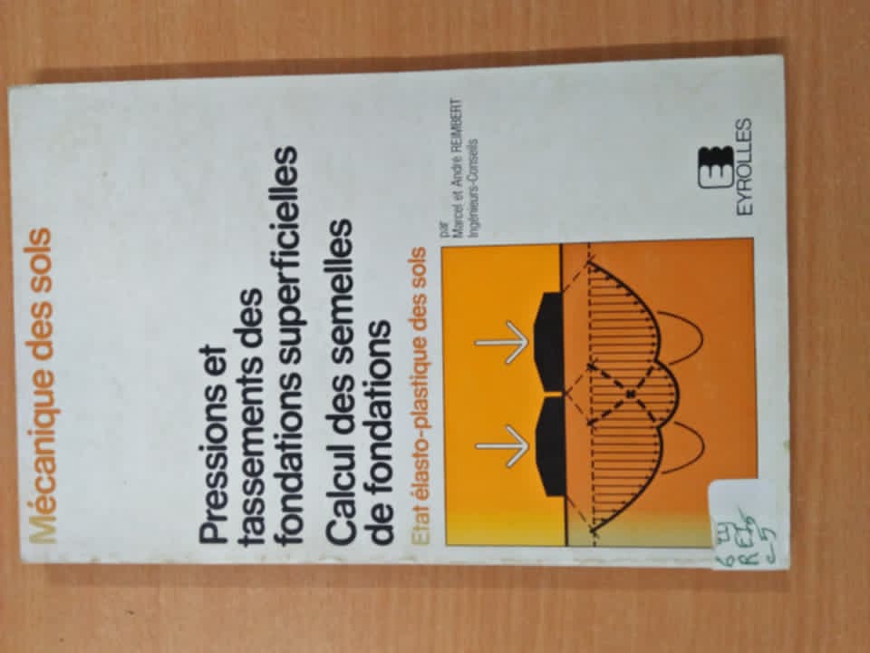 Reimbert, M. & Reimbert, A. (1982). Pressions et tassements des fondations superficielles, calcul des semelles de fondations (2e éd.) . Eyrolles;