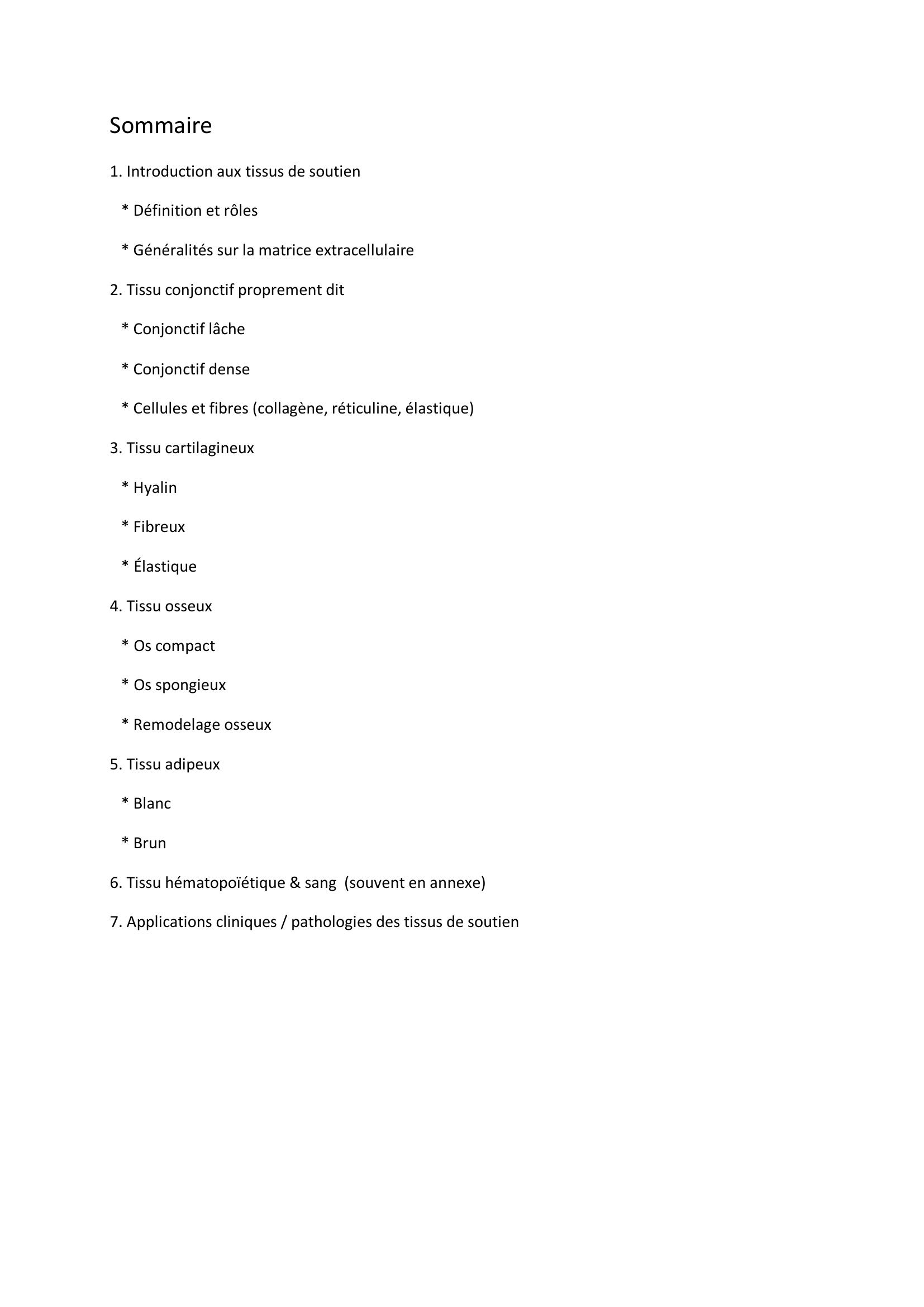 Cet ouvrage étude les trois parties suivantes: Le tissu conjonctif-le tissu cartilagineux- le tissu osseux